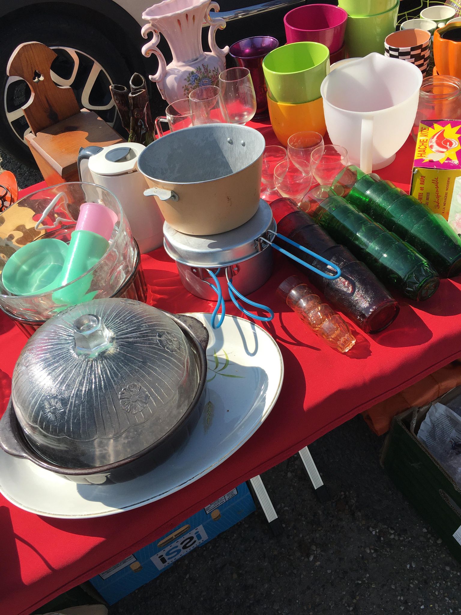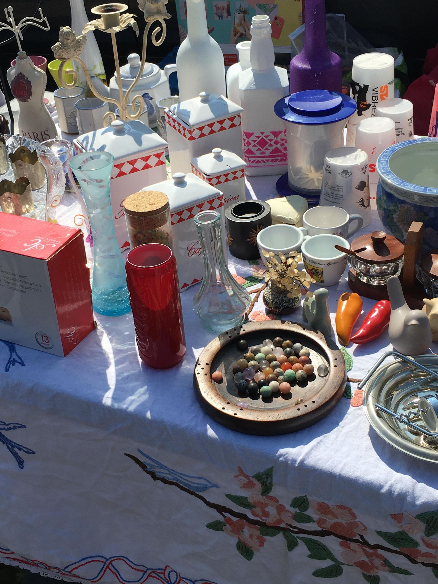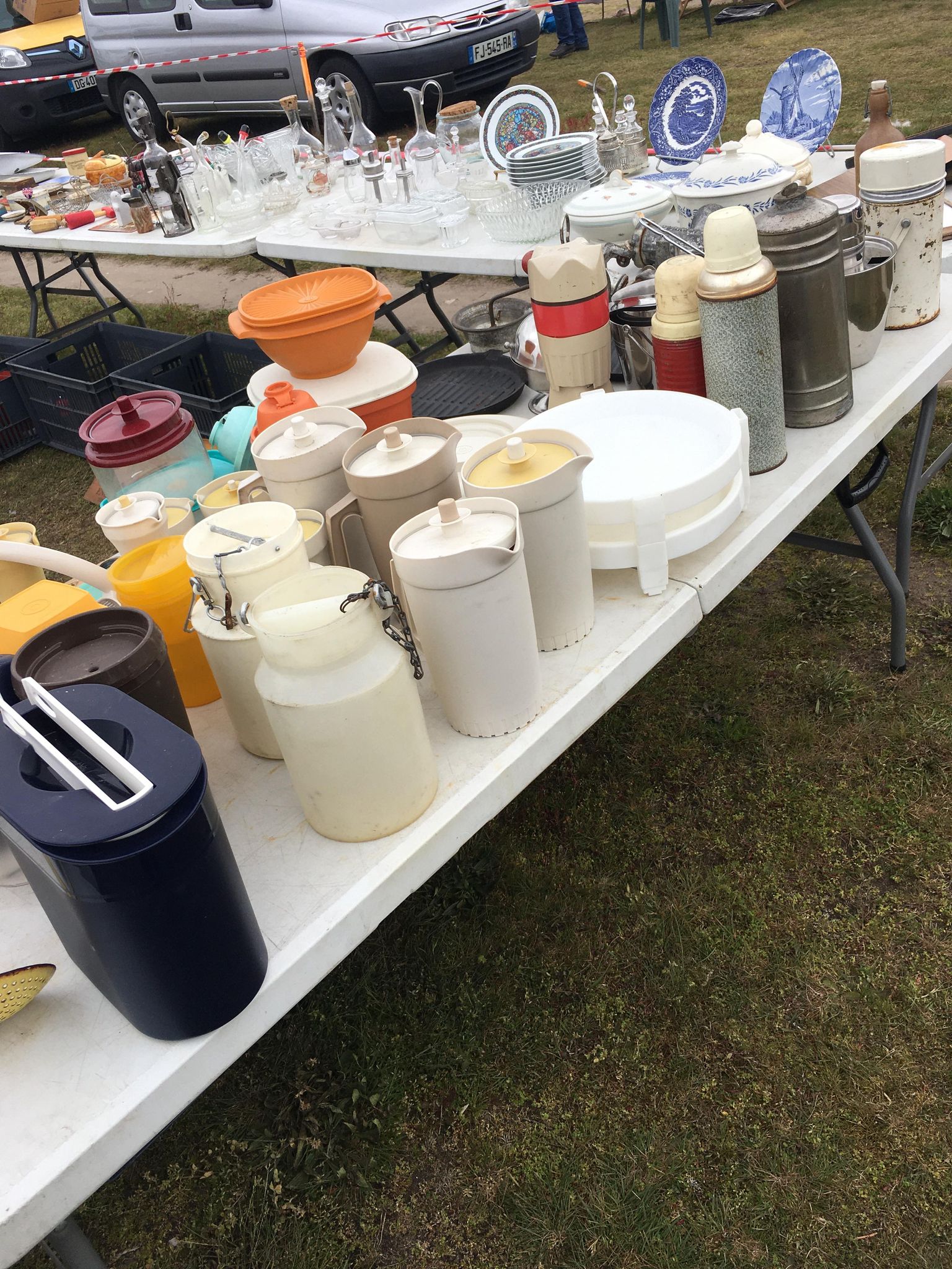 Les samedis de 8h a 19h pendant l’été. L’événement récurrent est organisé par Jass Design Vintage Art sur la place Michel Martin face à l’église. on a eu la chance de pouvoir y faire un tour le dernier WE de déballage à l’été 2020. C’était chouette, on est restés raisonnables avec juste un pot à sucre ou farine Henkel mais il y avait de belles choses.