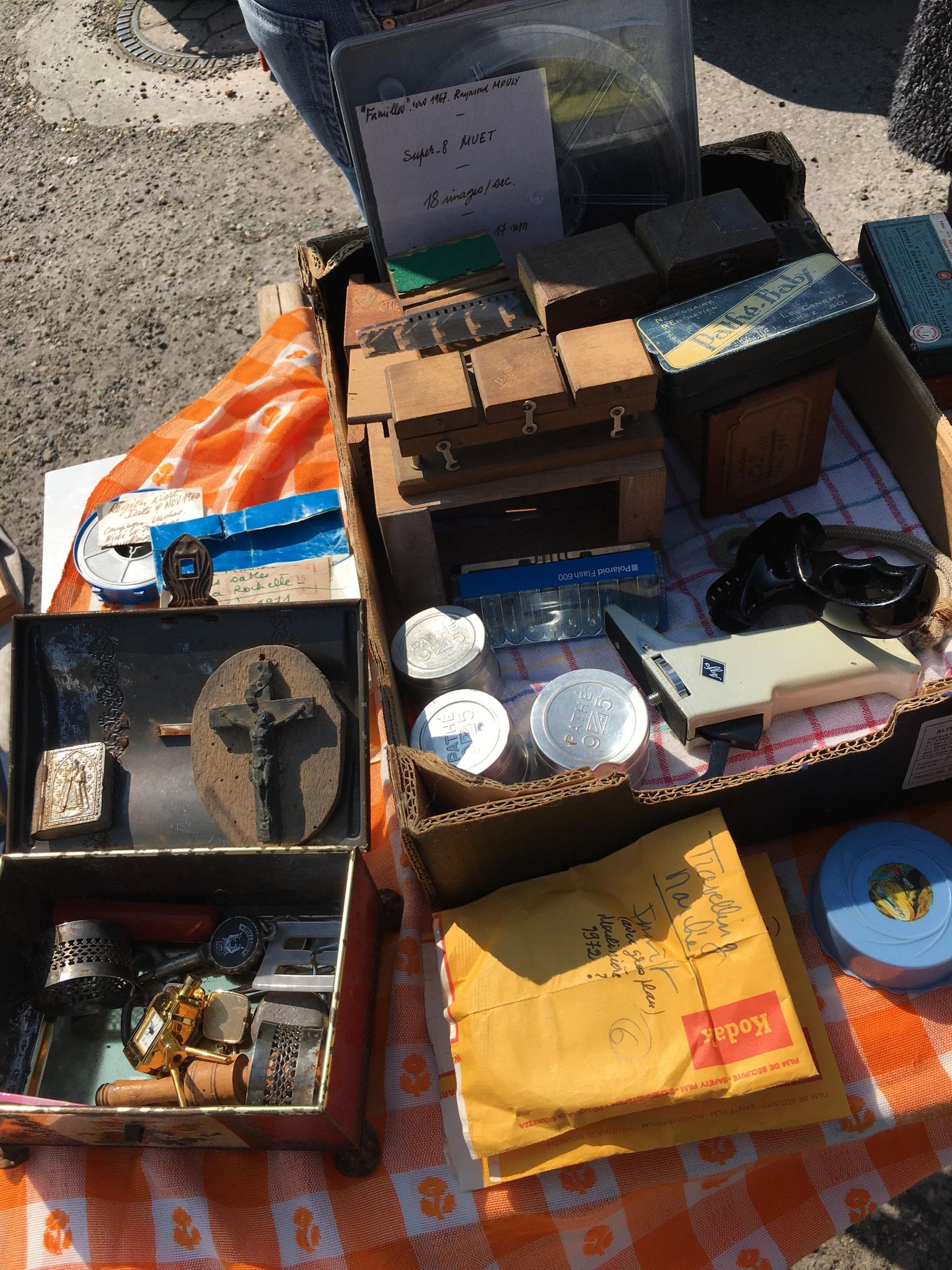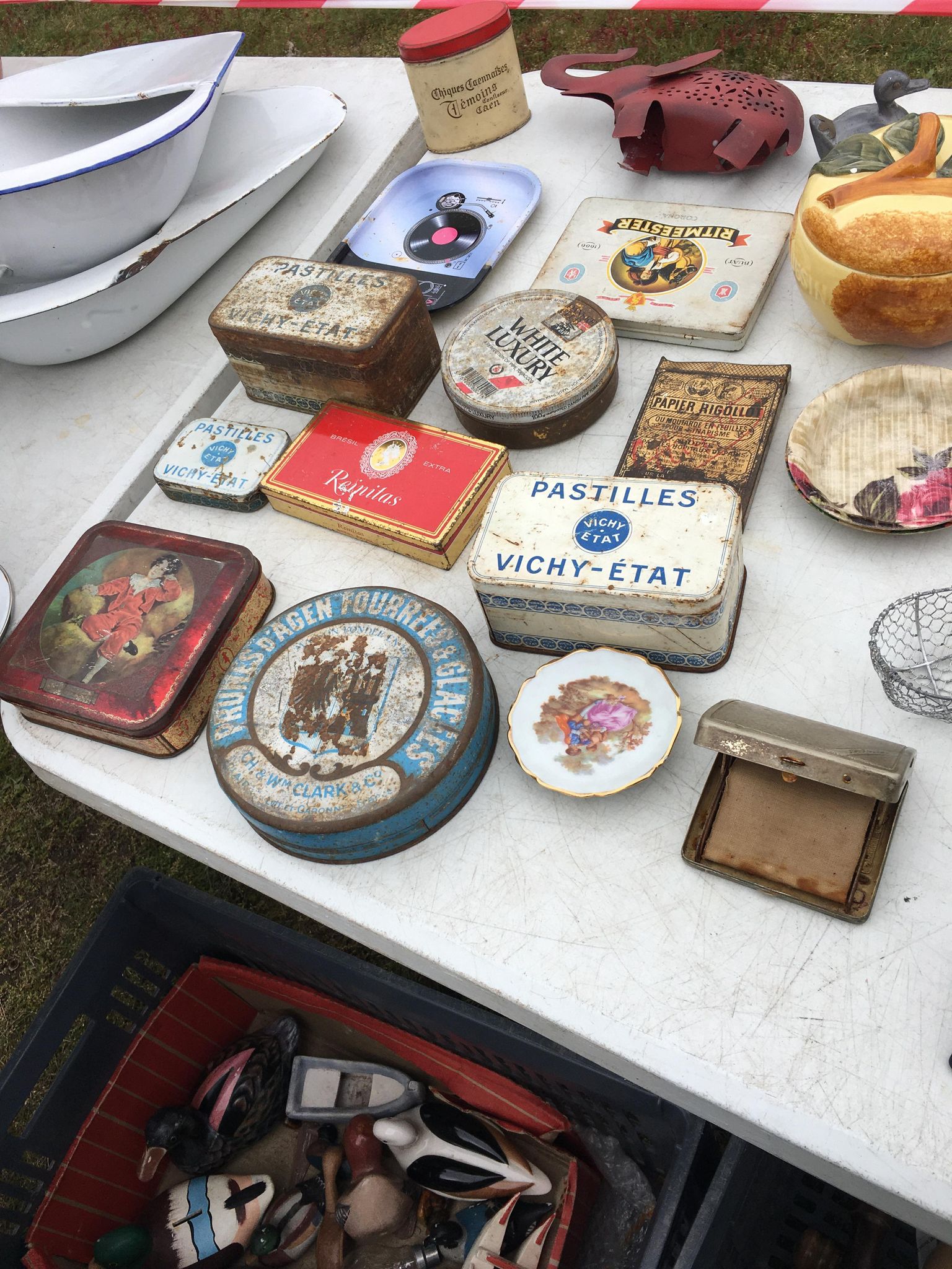 Le second nous a interpelé alors que nous allions manger au Mc Donald’s. 2 grosses allées de chineurs avec des stands thématiques sur le terrain à l’arrière de la recyclerie face à un parking de plusieurs commerces. La pluie menaçant, certains stands pliaient bagage lors de notre passage, cela ne m’a pas empêché de trouver une superbe boite en métal pour ma collection médicale personnelle.
