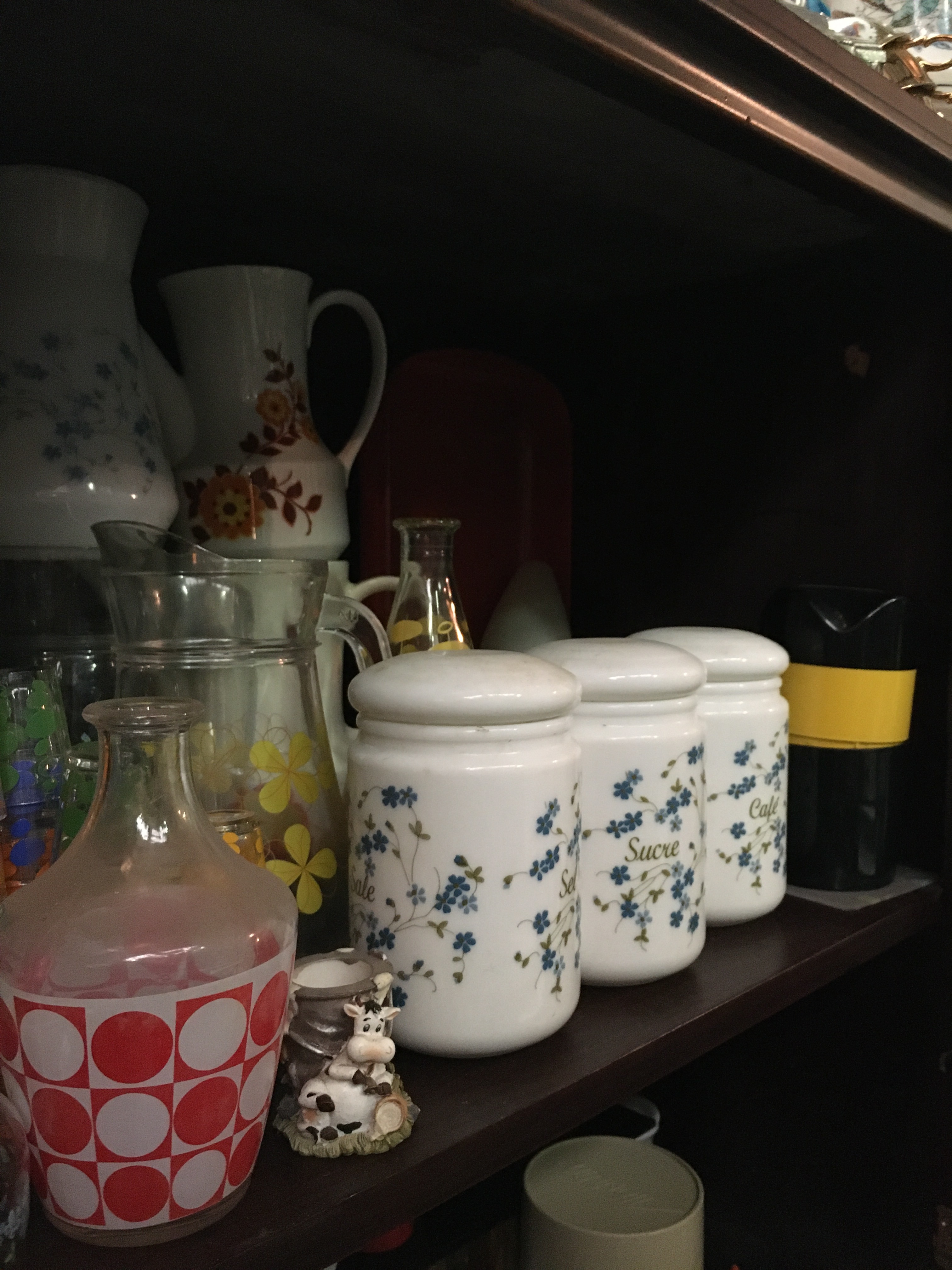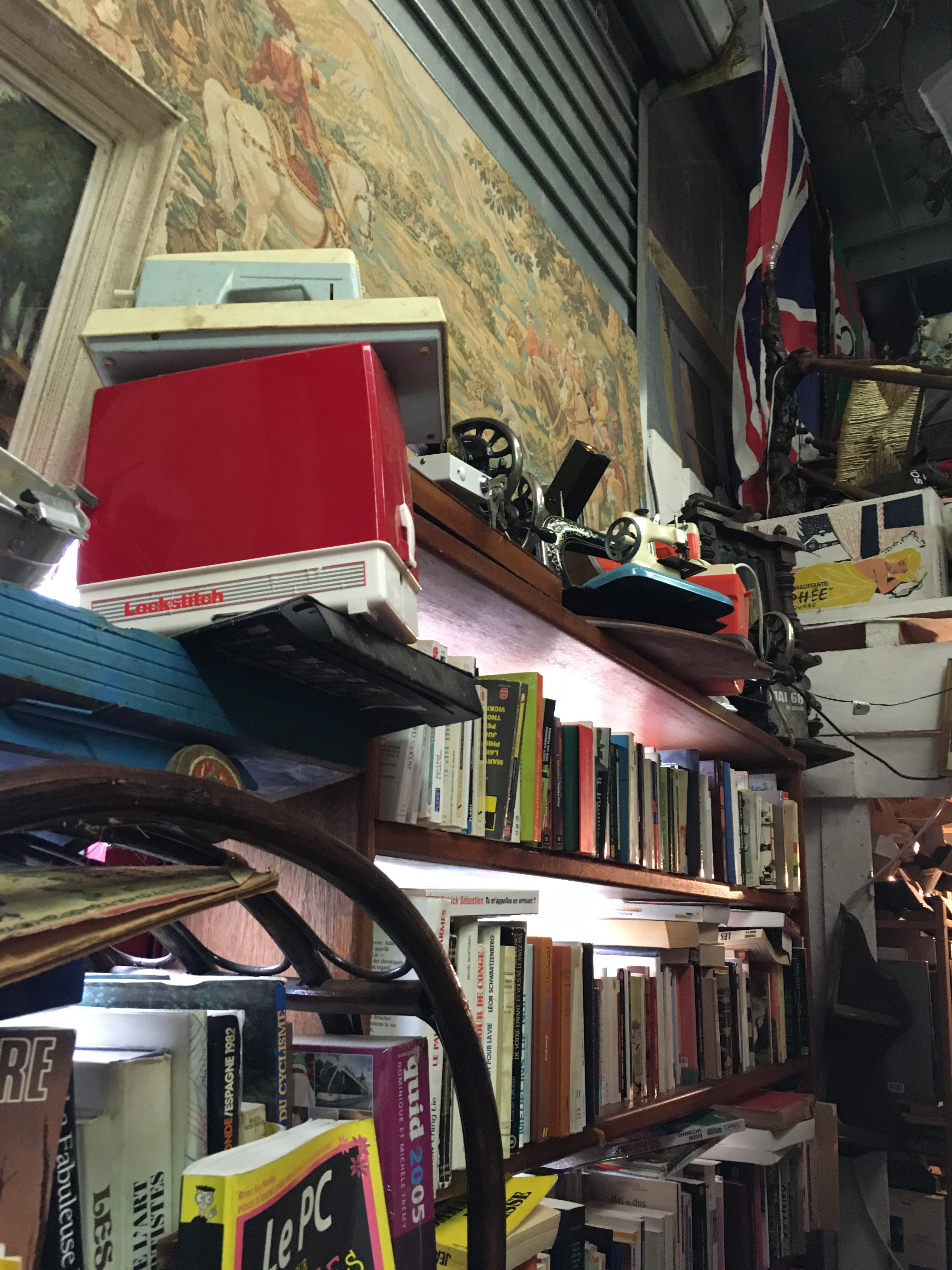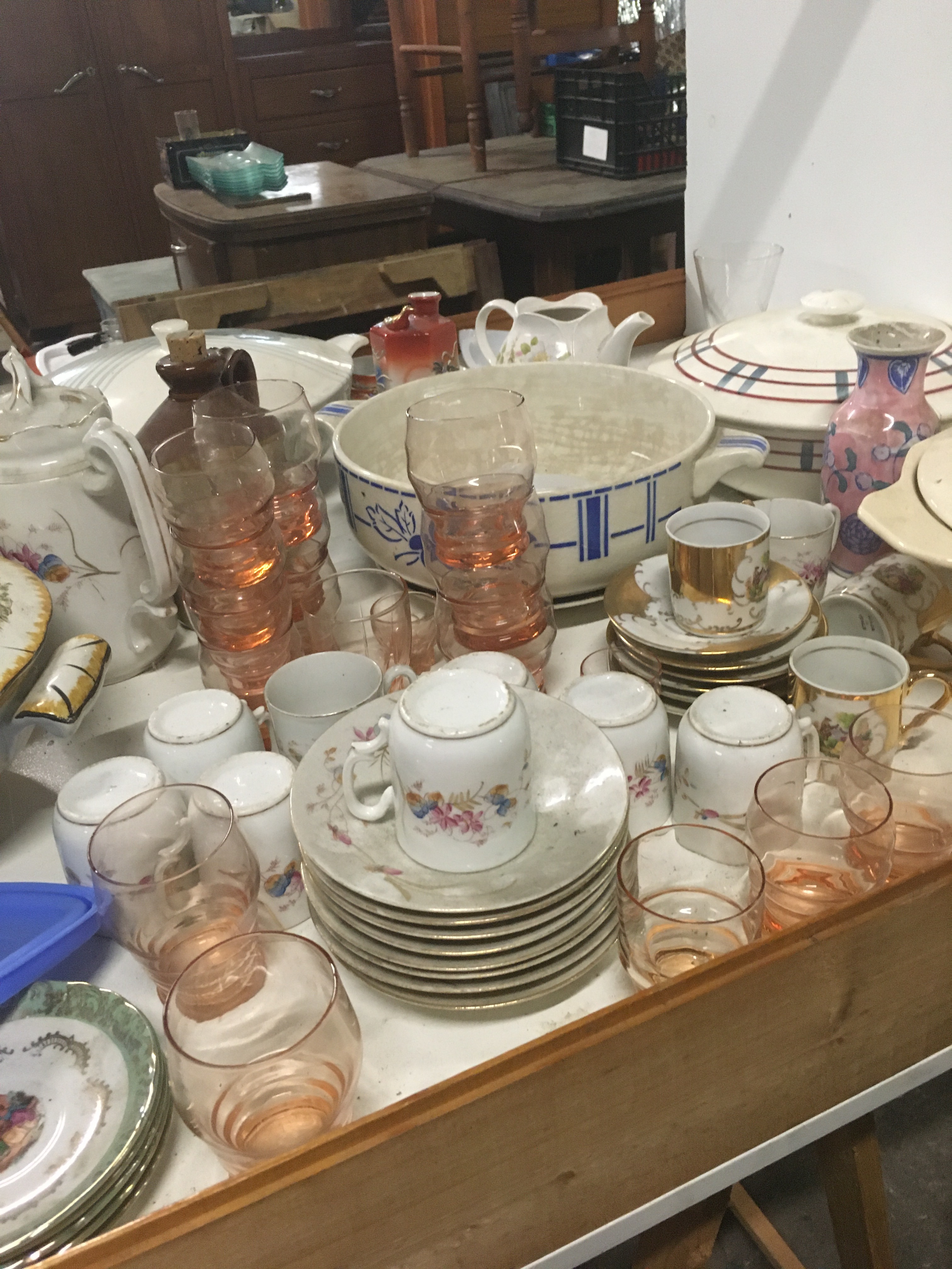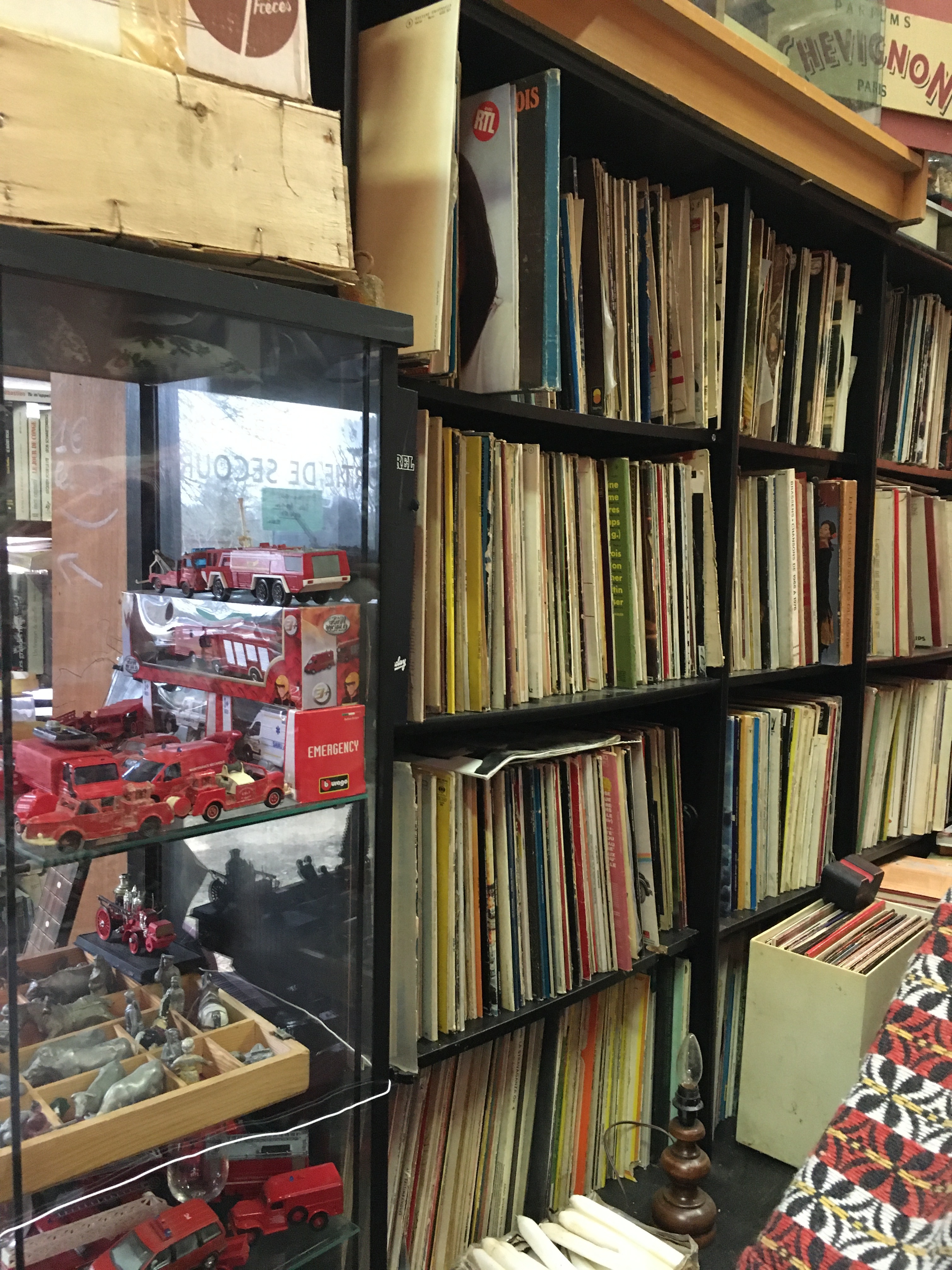 Vous l’avez compris la majorité de la vaisselle est dehors, comme dans la majorité des Emmaus. Il y a cependant des services complets d’assiettes, de tasses et de verres à l’intérieur. Un grand coin est réservé aux vêtements, chaussures et valises. 2 petites pièces accueillent les livres et les vinyls. Nous sommes repartis de notre première visite avec :