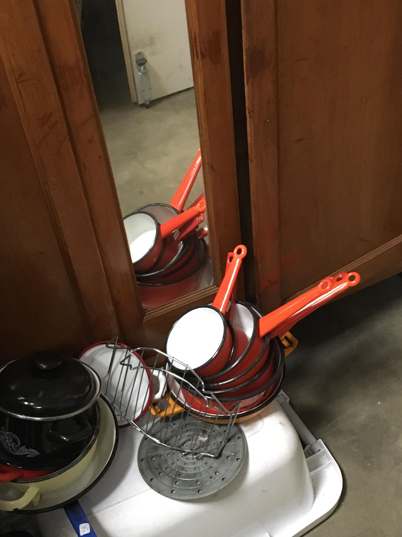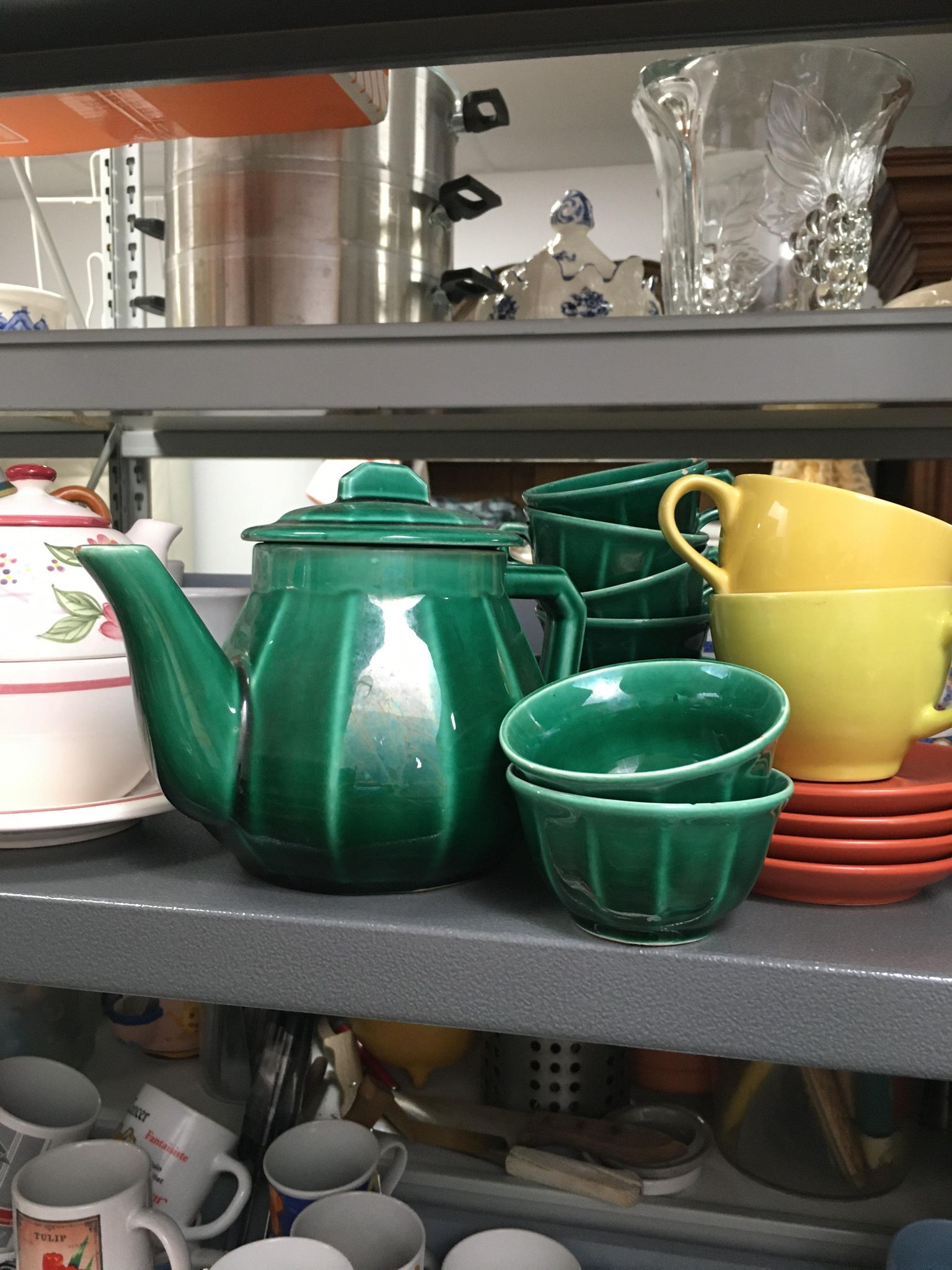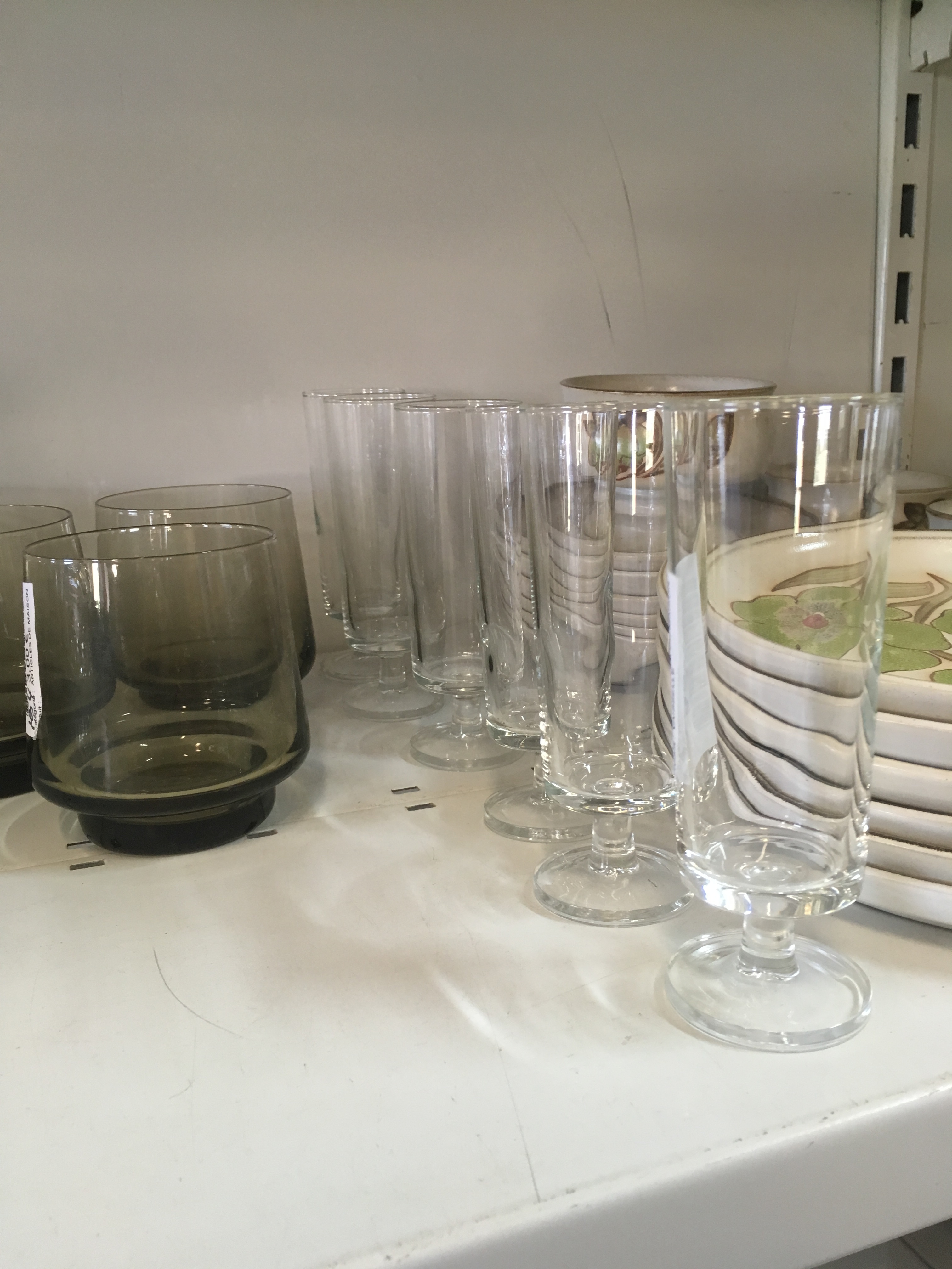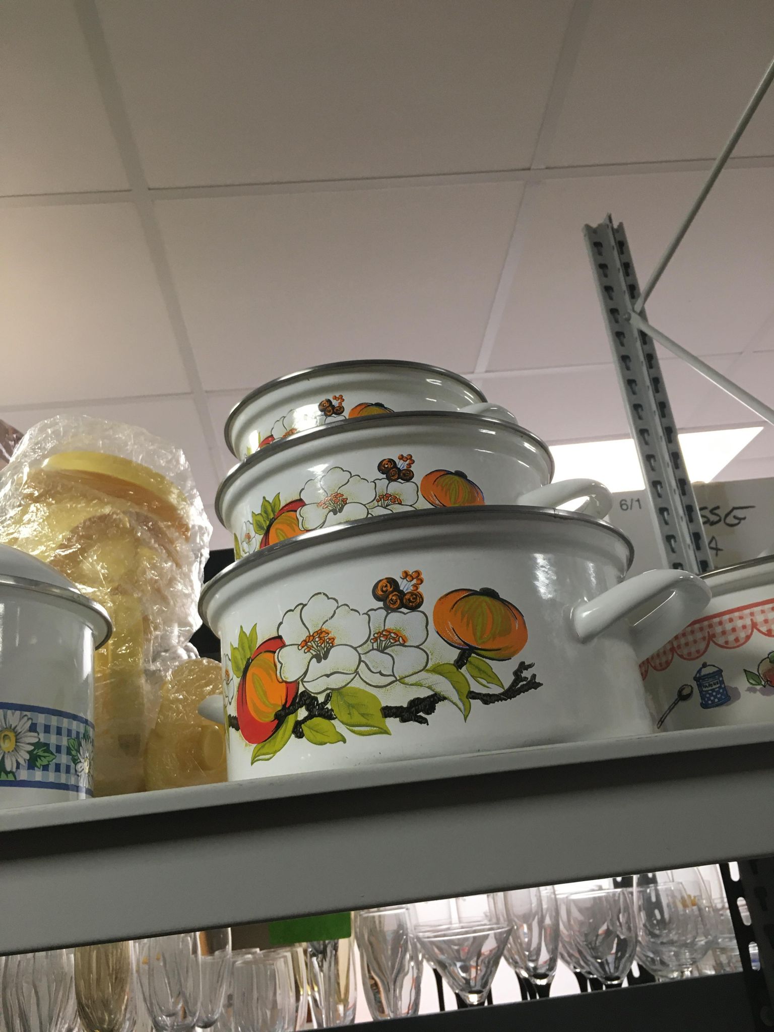 Vous l’avez compris la majorité de la vaisselle est dehors, comme dans la majorité des Emmaus. Il y a cependant des services complets d’assiettes, de tasses et de verres à l’intérieur. Un grand coin est réservé aux vêtements, chaussures et valises. 2 petites pièces accueillent les livres et les vinyls. Nous sommes repartis de notre première visite avec :