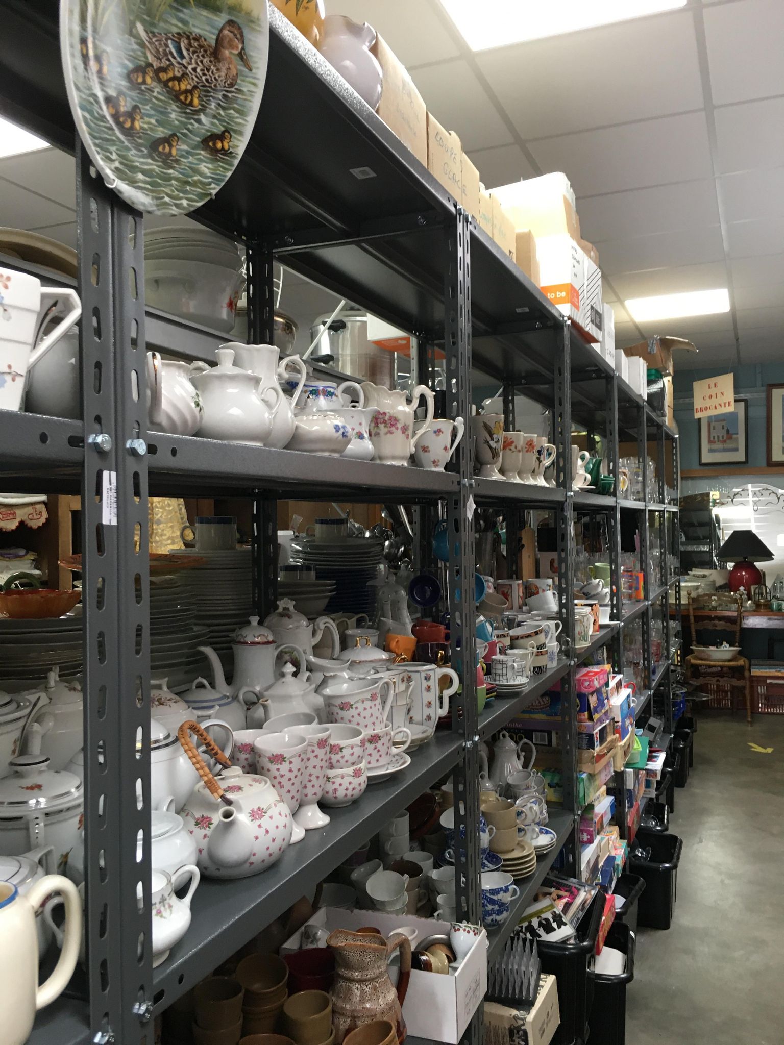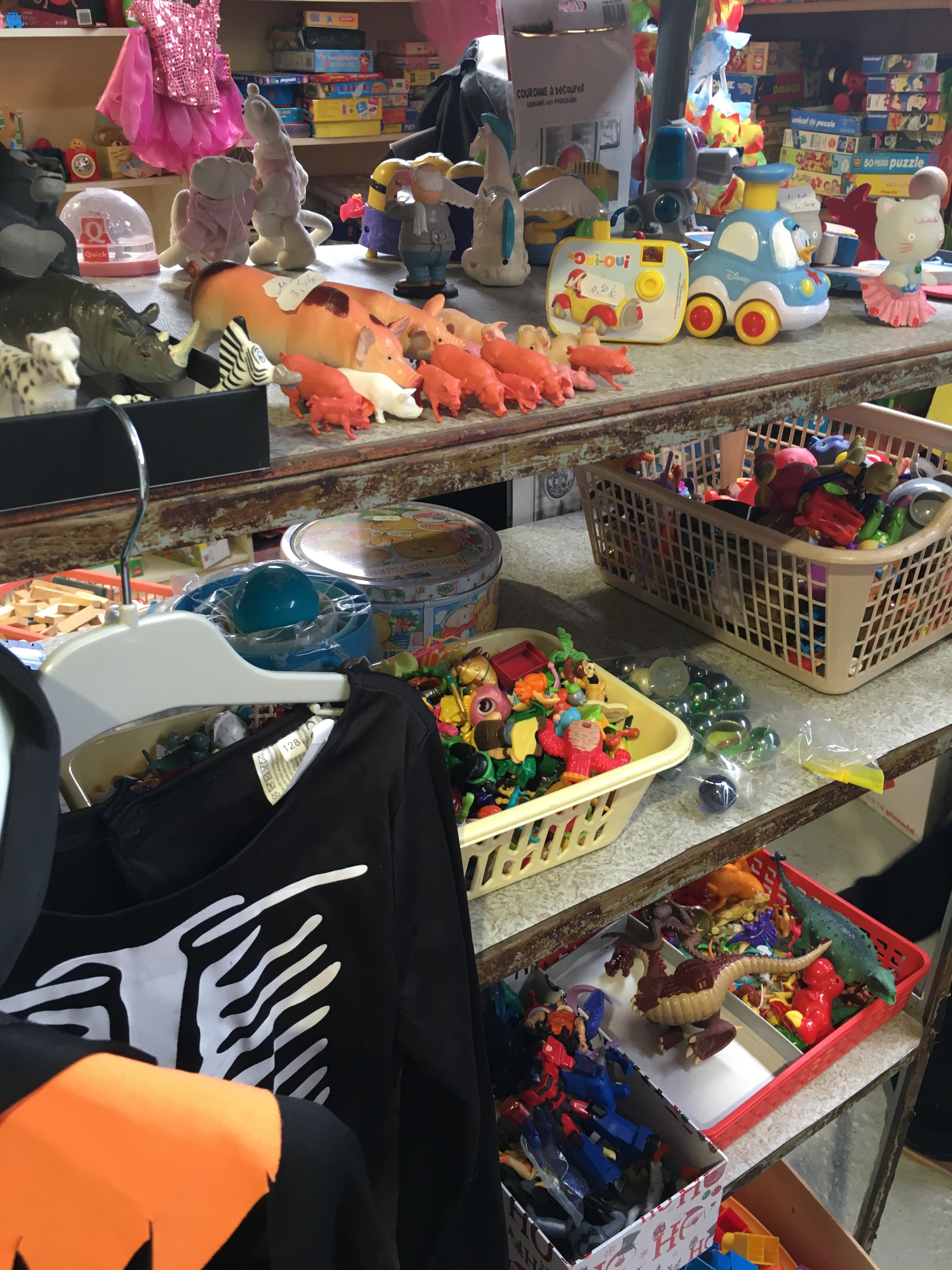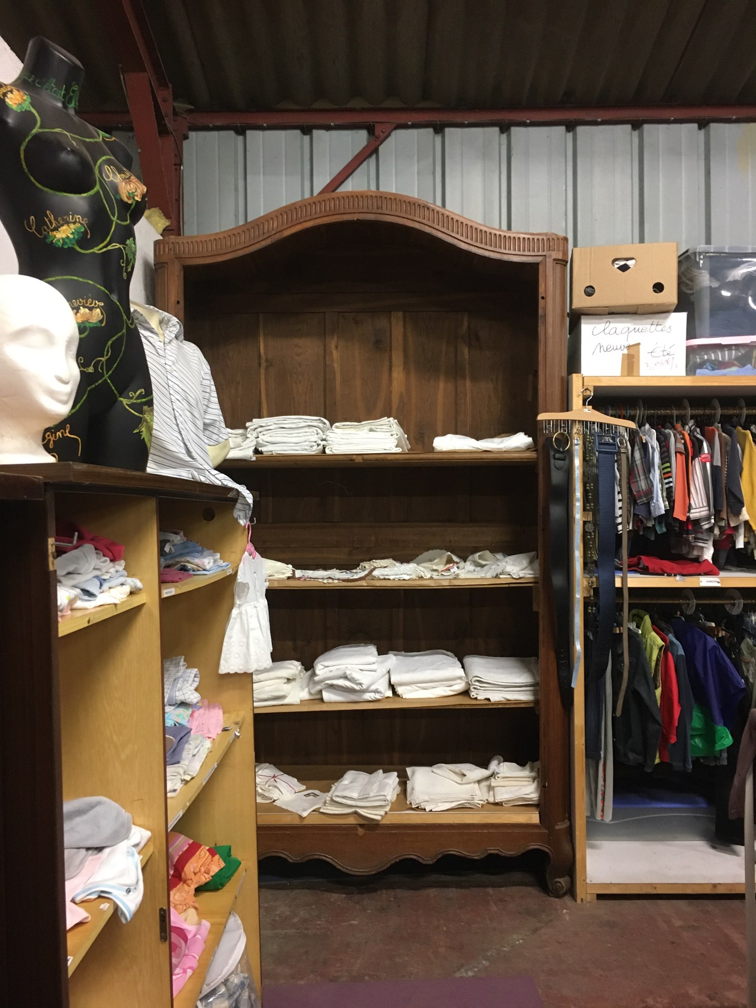 C’est assez grand et plutôt bien rangé, il n’y a pas les prix sur les objets ce qui peut décontenancer mais nous n’avons pas vraiment eu de mauvaises surprises jusque là. Vous rentrez par le milieu du bâtiment. Sur votre droite, de la petite vaisselle, les jouets, la friperie et la puériculture. Au centre le mobilier bas et la déco. Pour les verres, les gros meubles, les livres et le matériel de garage il vous faudra aller à gauche. Le lieu est bien tenu mais même si c’est tentant nous vous déconseillons d’ouvrir les cartons pas encore déballés par les bénévoles. Ils ont tellement eu de casse qu’ils ne sont pas très contents lorsqu’on s’en approche.