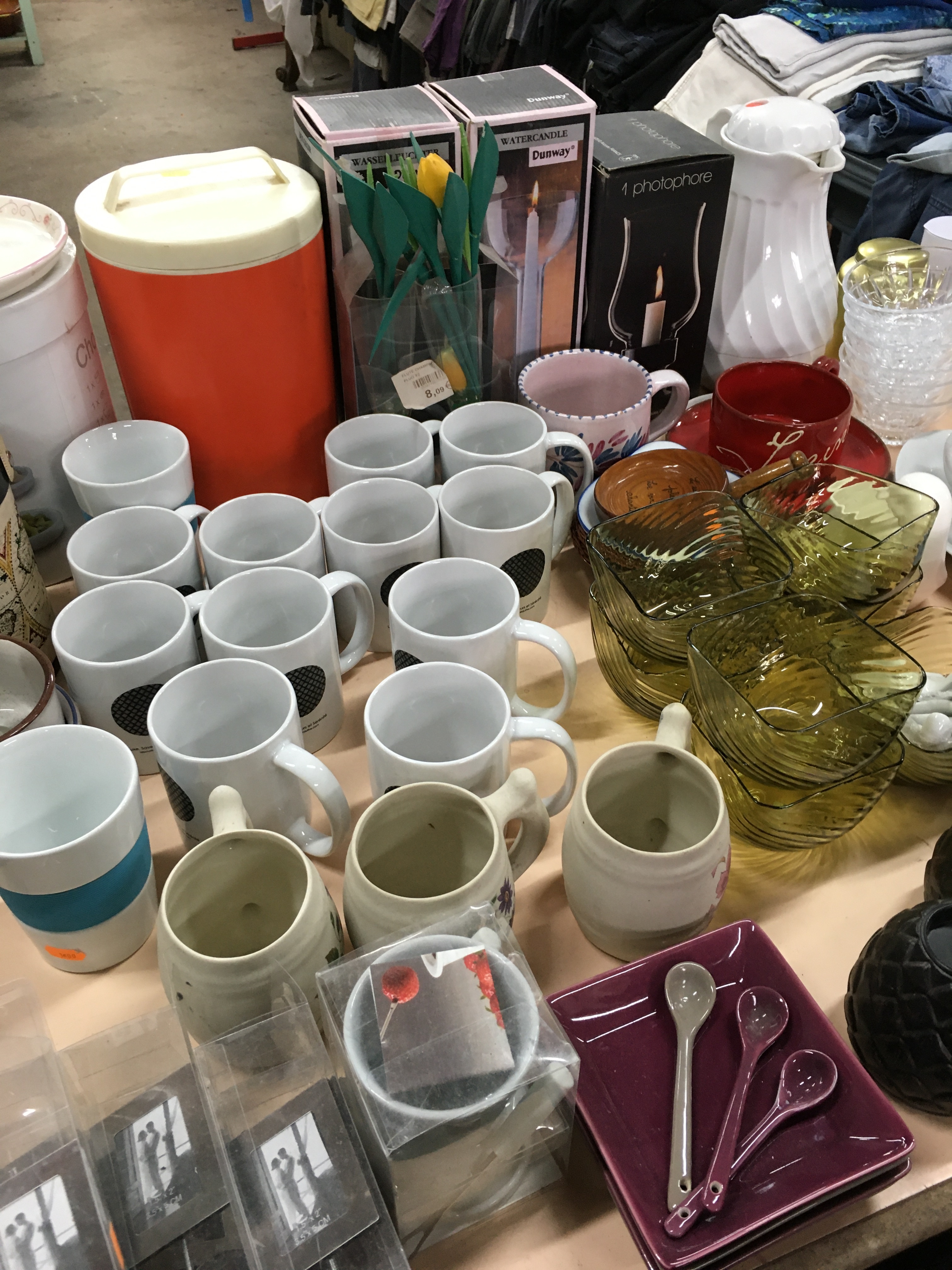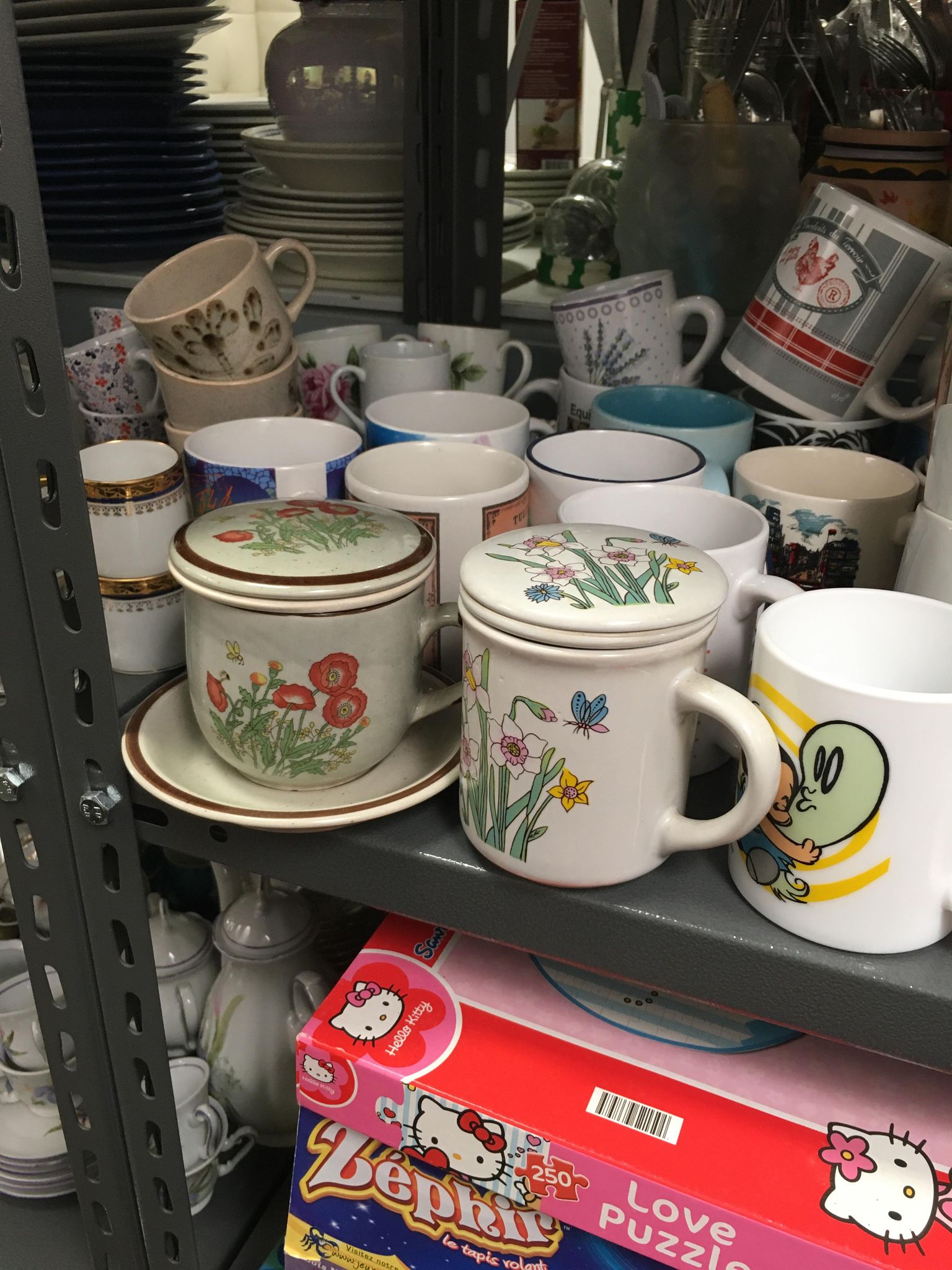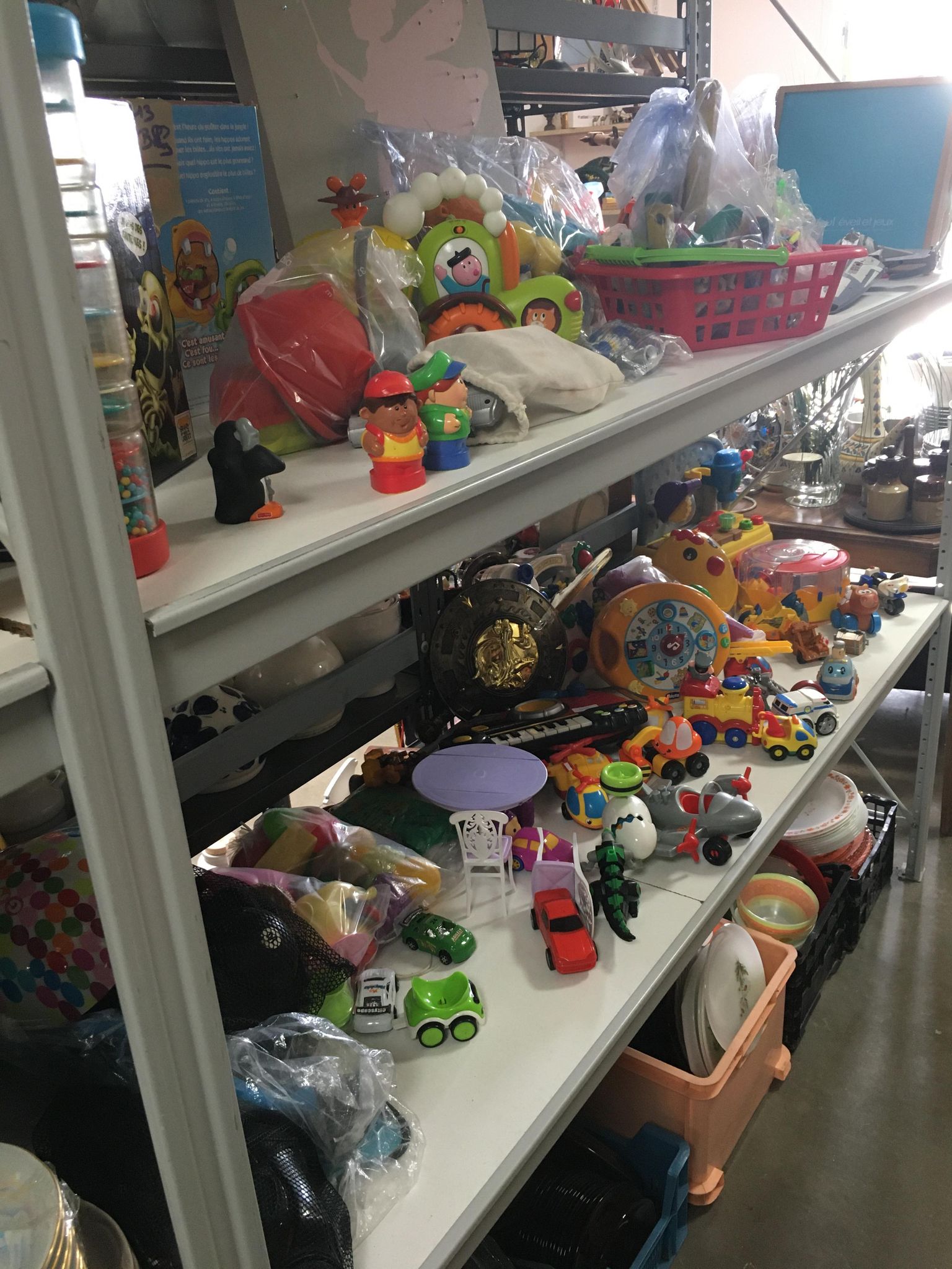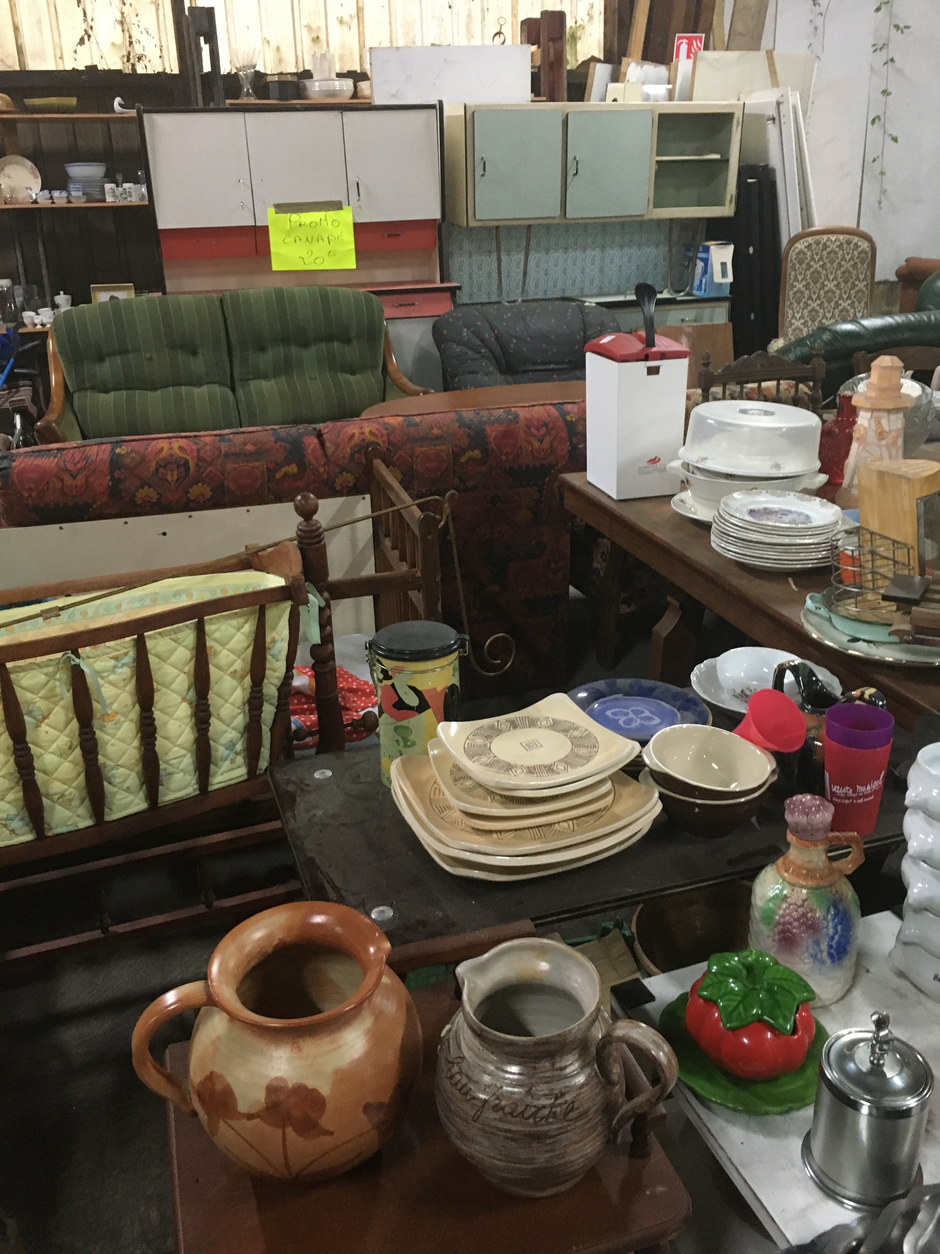 C’est assez grand et plutôt bien rangé, il n’y a pas les prix sur les objets ce qui peut décontenancer mais nous n’avons pas vraiment eu de mauvaises surprises jusque là. Vous rentrez par le milieu du bâtiment. Sur votre droite, de la petite vaisselle, les jouets, la friperie et la puériculture. Au centre le mobilier bas et la déco. Pour les verres, les gros meubles, les livres et le matériel de garage il vous faudra aller à gauche. Le lieu est bien tenu mais même si c’est tentant nous vous déconseillons d’ouvrir les cartons pas encore déballés par les bénévoles. Ils ont tellement eu de casse qu’ils ne sont pas très contents lorsqu’on s’en approche.