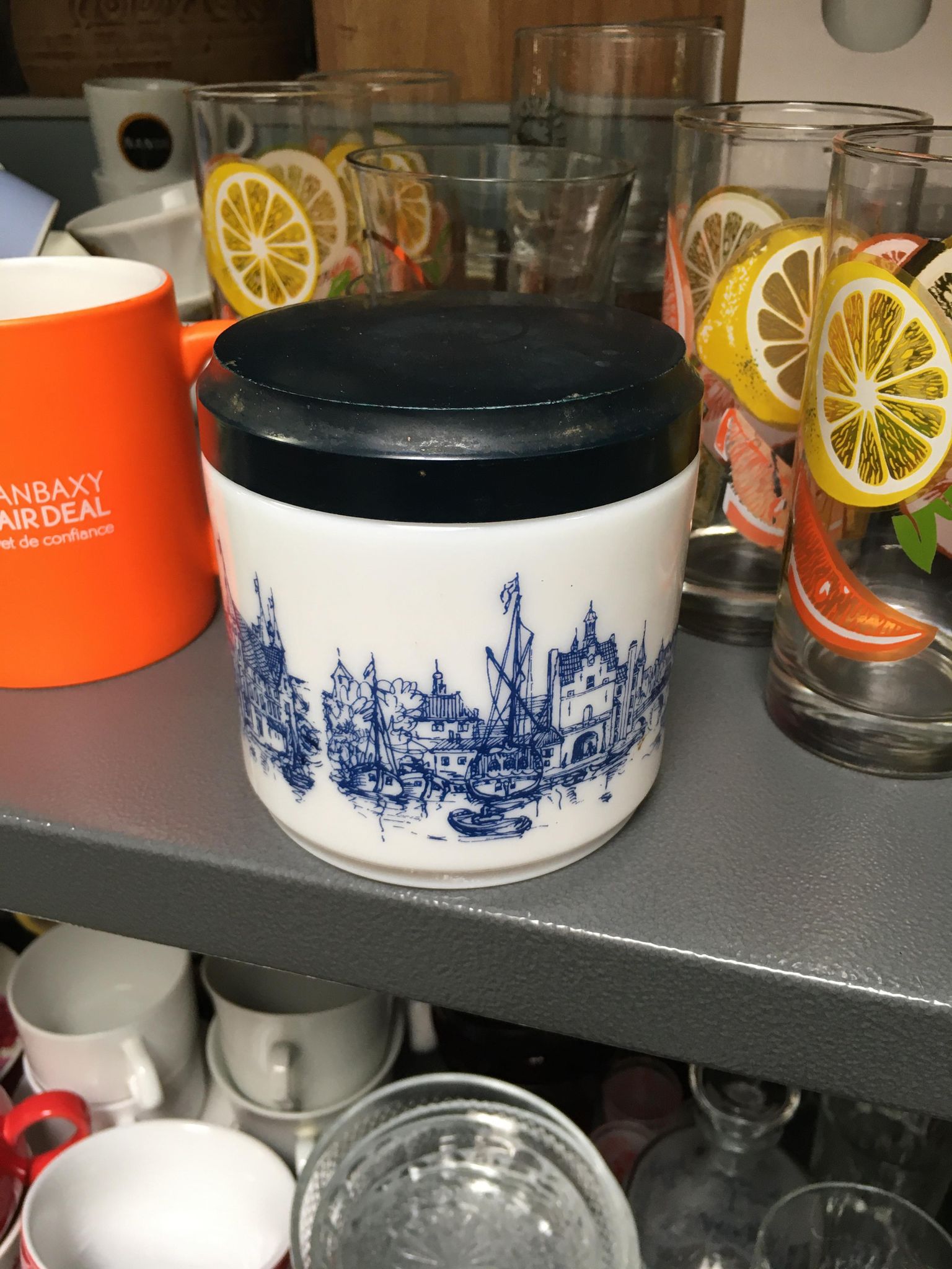 - 1 carafe individuelle avec des voitures anciennes sérigraphies en rouge (maman m’a dit que sa maman avait la même)
