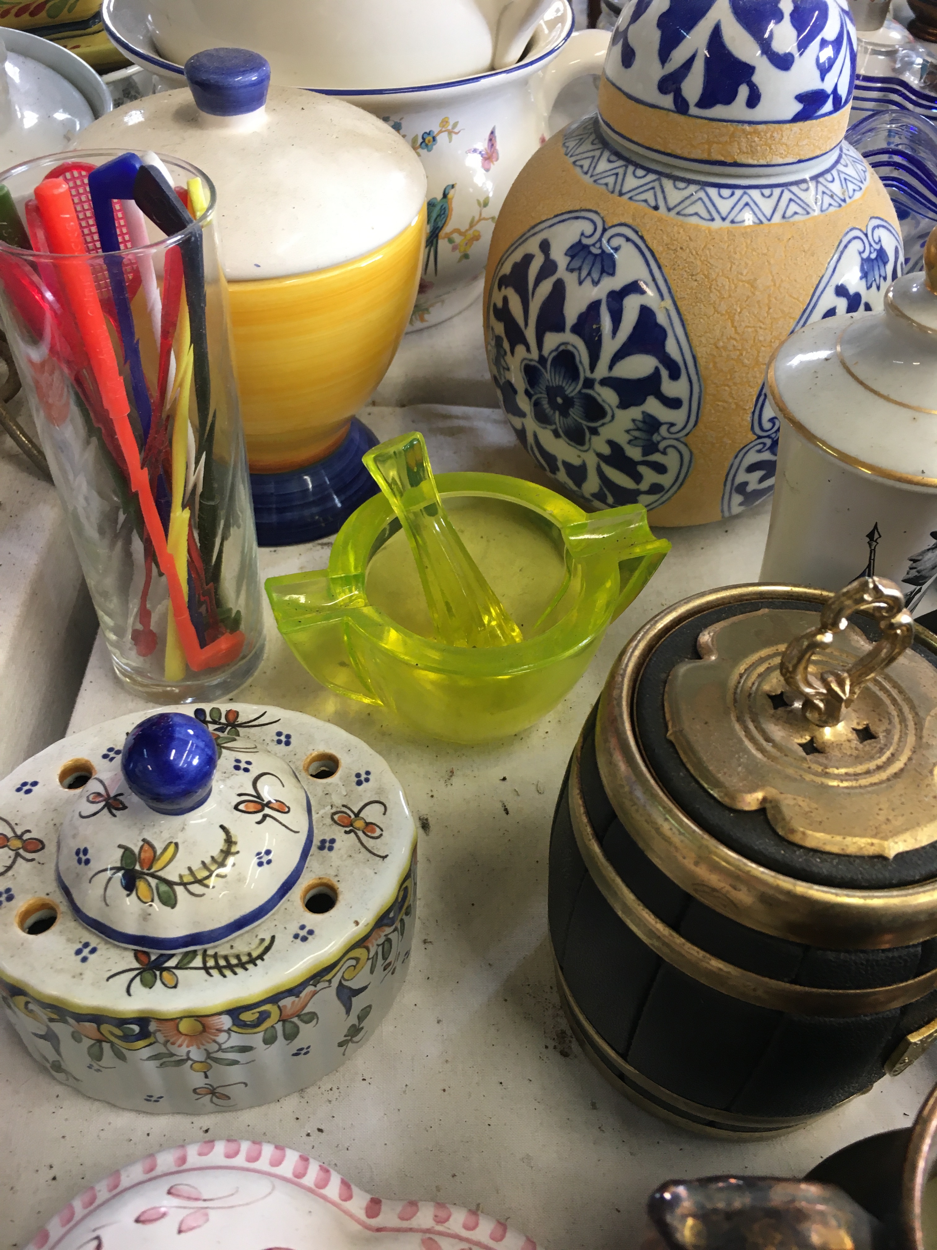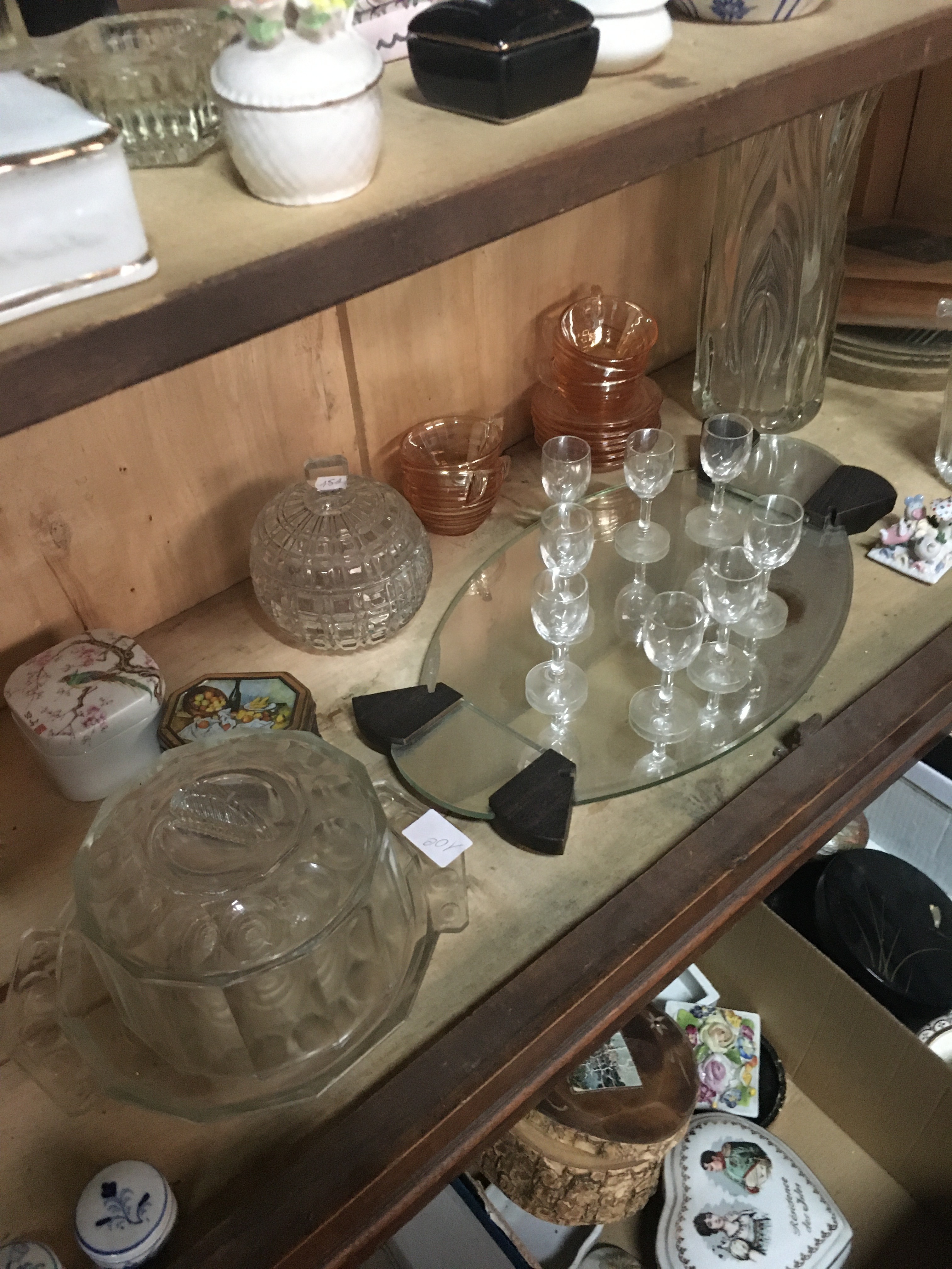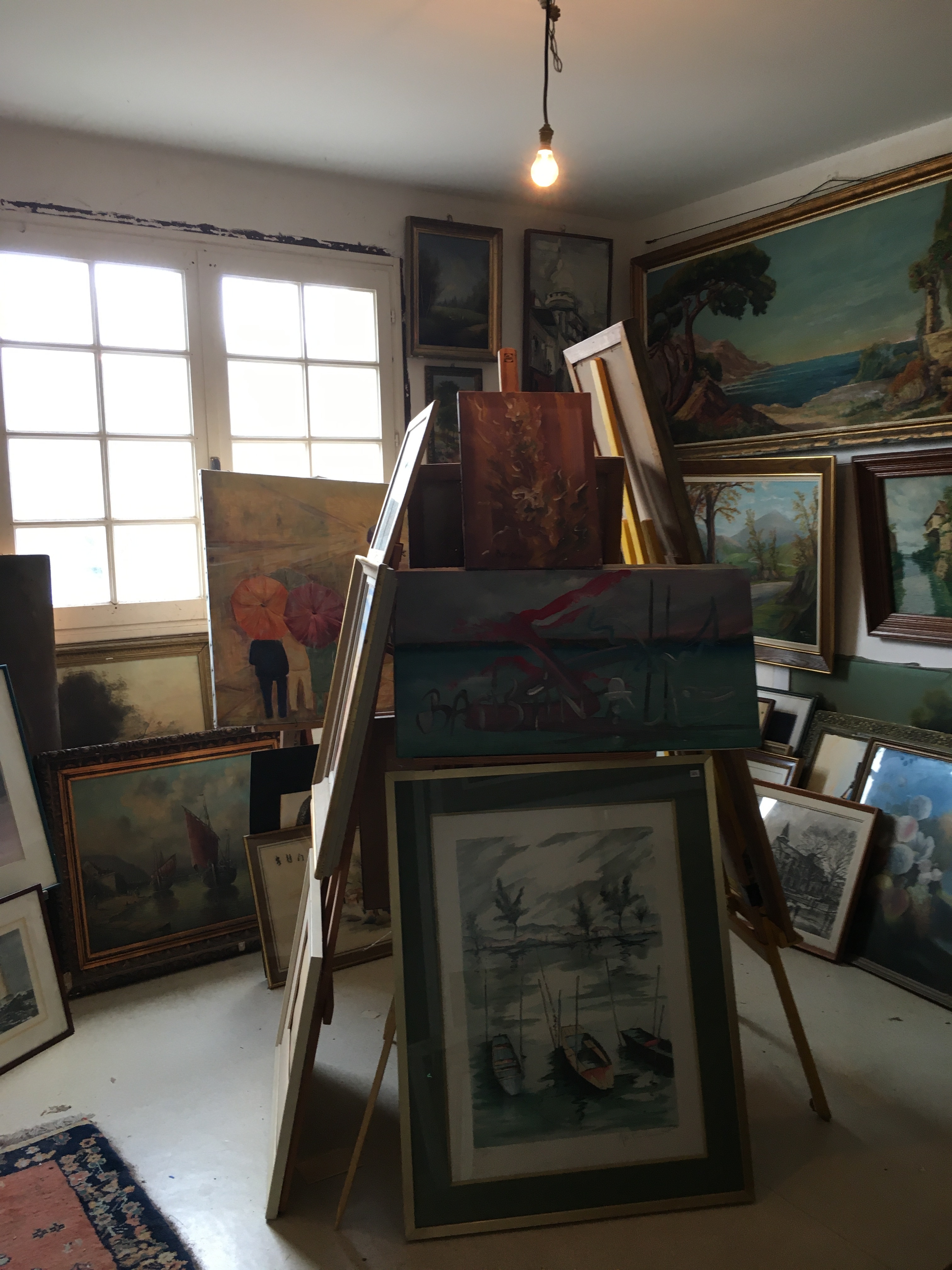 La Brocante vert anis du 96 Boulevard de la République, est plus grande qu’elle ne le laisse voir de l’extérieur. Il y a certes le local flashy mais toute la maison accolée est aussi concernée. Au total 8 pièces pour près de 400 m² de brocante et il y en a pour tous les gouts. De la vaisselle pour tous les styles même si on n’a pas croisé d’Arcopal en y réfléchissant, des luminaires et lampes à huile, du petit mobilier, beaucoup de cadres et des peintures, un stock militaire, des livres et bijoux anciens. Le lieu est sympa à découvrir mais les prix sont assez élevés, j’avoue ne pas m’être attendus à des prix de brocantes bordelaises. J’ai cependant trouvé un super pilon en verre jaune fluo de la marque OPALEX fabriqué en France.