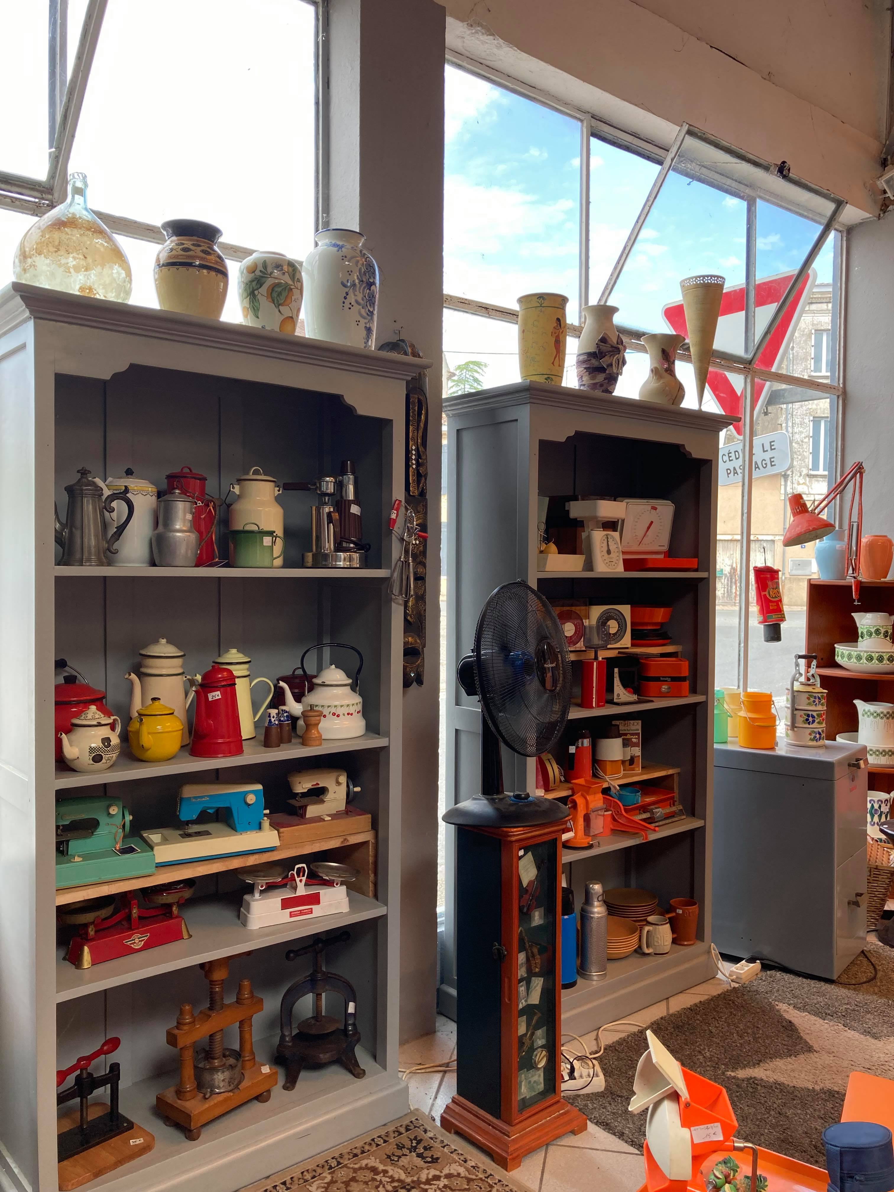 Ce sont pour nous des boutiques « prêtes à consommer » de l’objet vintage. Tout est travaillé pour donner envie et on se laisserait bien tenter. Les brocantes sont si bien rangées qu’on en perd le plaisir à farfouiller. Les brocanteurs de ville présentent des objets de valeurs entreposés sans poussière et avec soin, souvent classés par thématiques ou univers / périodes. Nous avons visité entre autres les Brocanteurs du Passage Saint Michel dans le quartier du même nom à Bordeaux et Le Village Notre Dame à Bordeaux-Chartrons. Ces lieux regorgent de beau mobilier ancien et de décoration vintage tout aussi splendides mais nous nous y sentons comme dans un musée. Si vous voulez en prendre plein les yeux, et faire un voyage dans le temps c’est dans ce genre de lieux qu’ils faut se rendre.