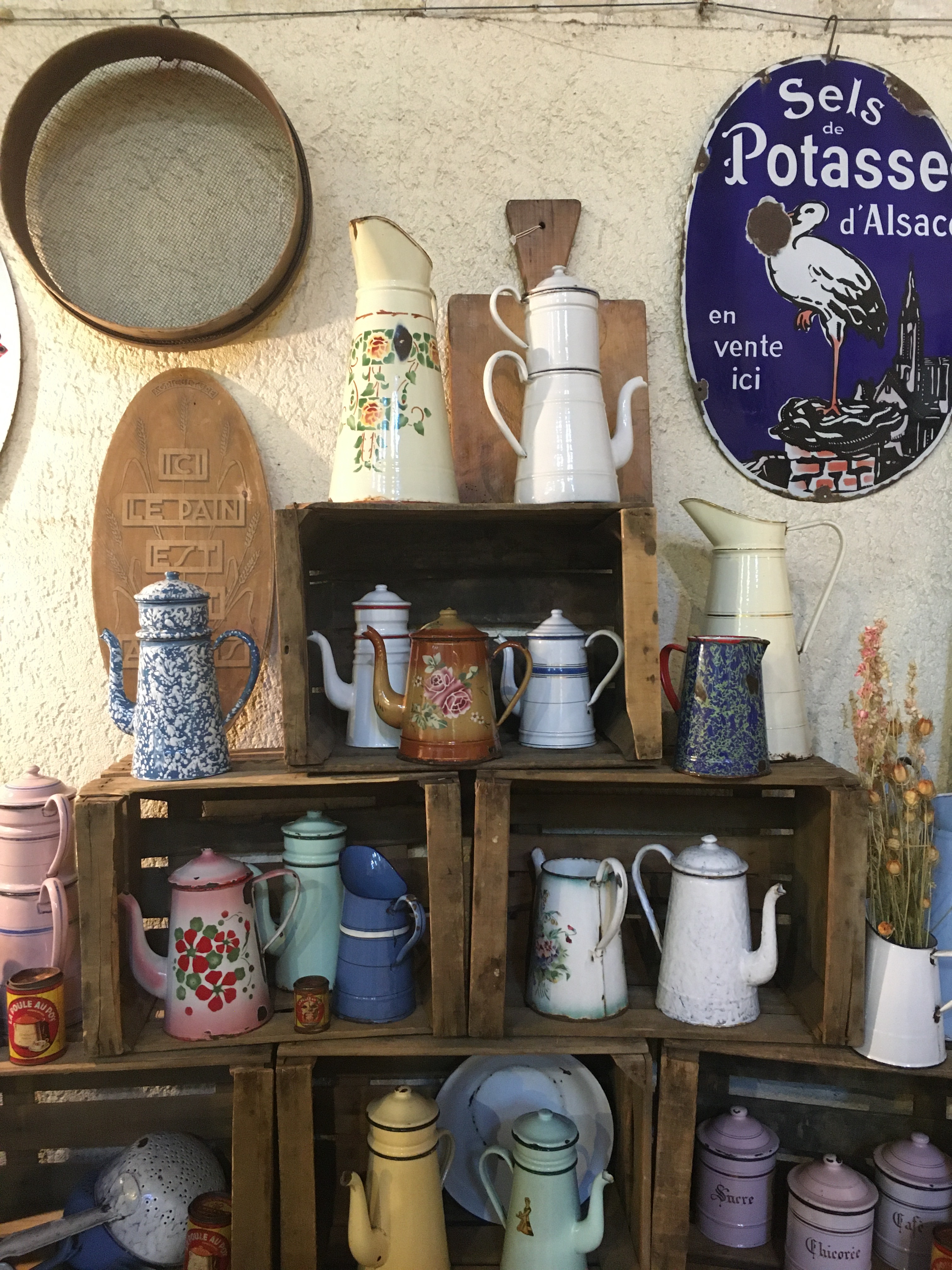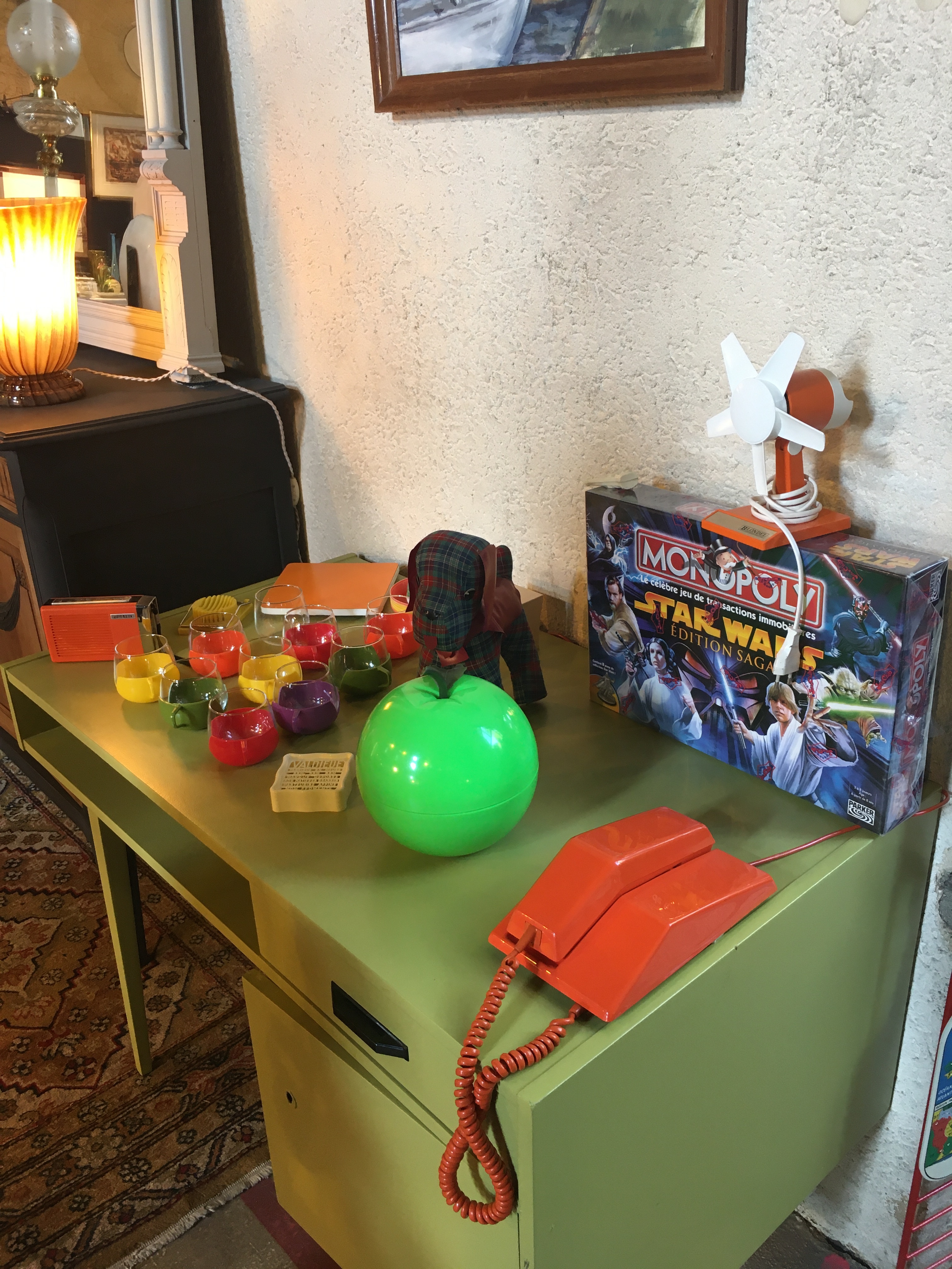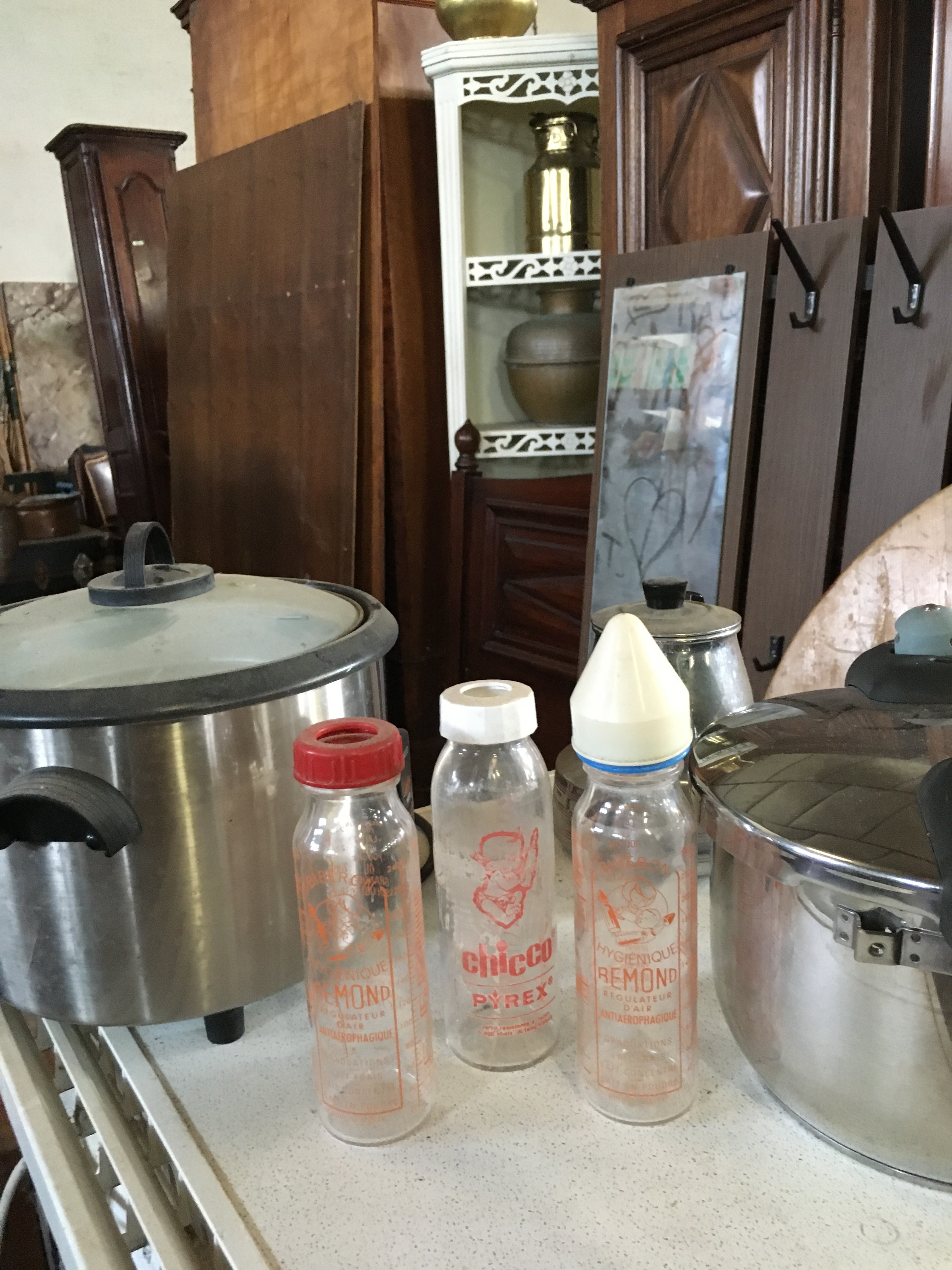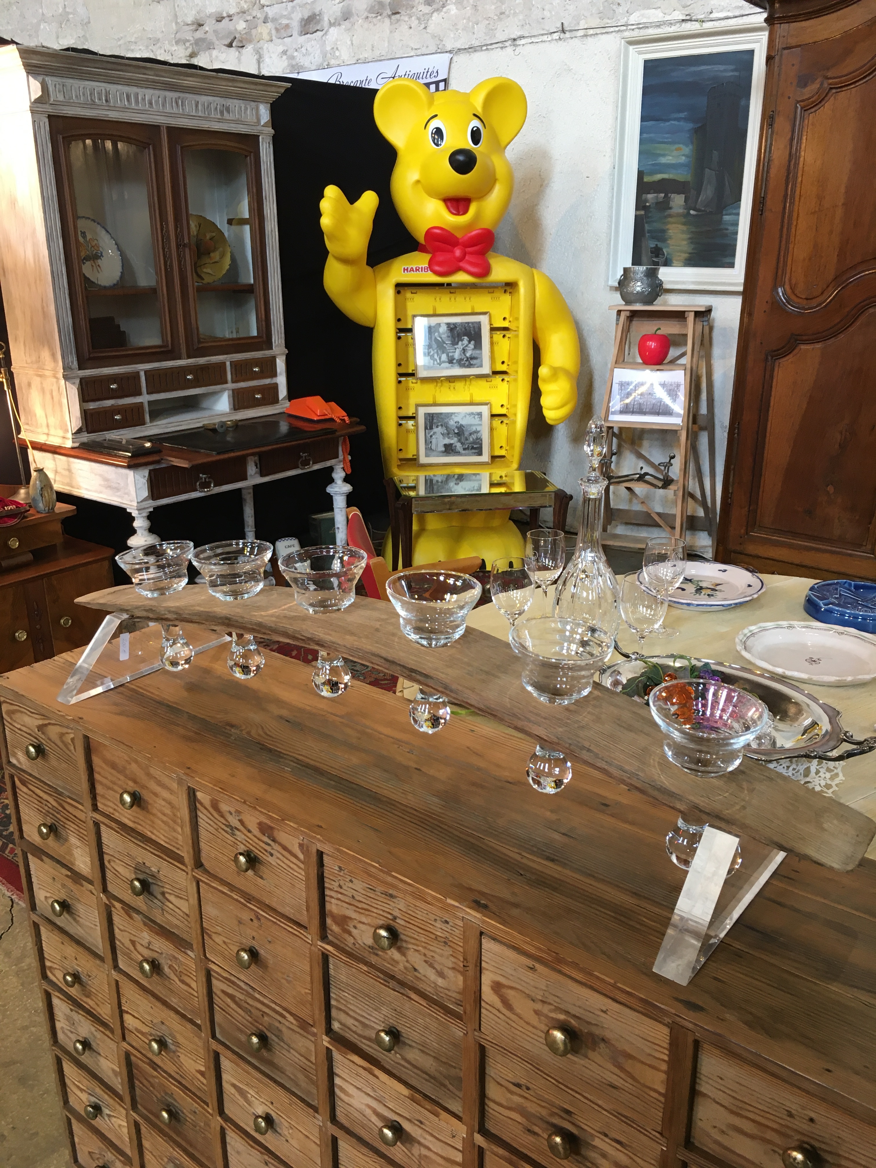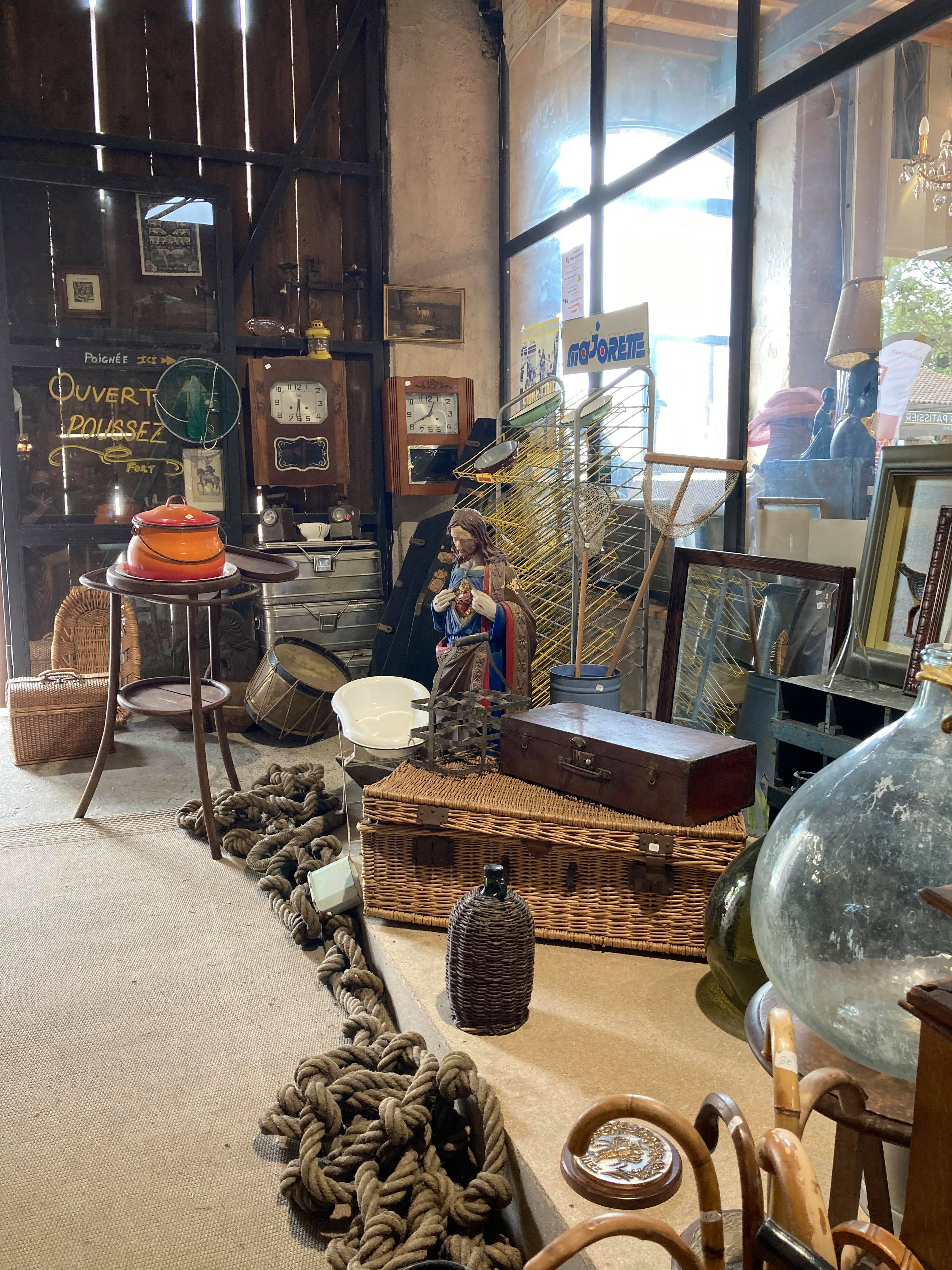 Il existe plusieurs brocantes à Preignac. Elles sont assez complémentaires. Il me semble que depuis notre visite, la Conserverie Brocante ait déménagé en Dordogne et une nouvelle brocante a ouvert ses portes dans l’ancienne station essence / garage place de l’église (article d’Actu.fr). 250m² que nous avons visité en famille le 10 juillet 2021. J’ai été agréablement surprise par ce lieu regroupant plusieurs corners de brocanteurs. tout l’ancien garage a été transformé en brocante, jusque dans les anciens bureau. A l’entrée, on est accueillis par un brocanteur adorable qui vend du vintage, autant vous dire qu’on était faits pour s’entendre. Je vous laisse découvrir sa page Facebook, Boulevards des temps. Et pour la Brocanterie c’est par là.