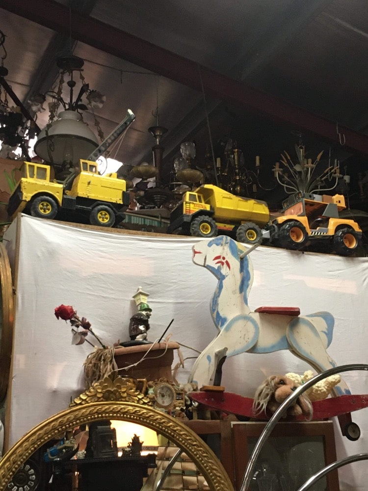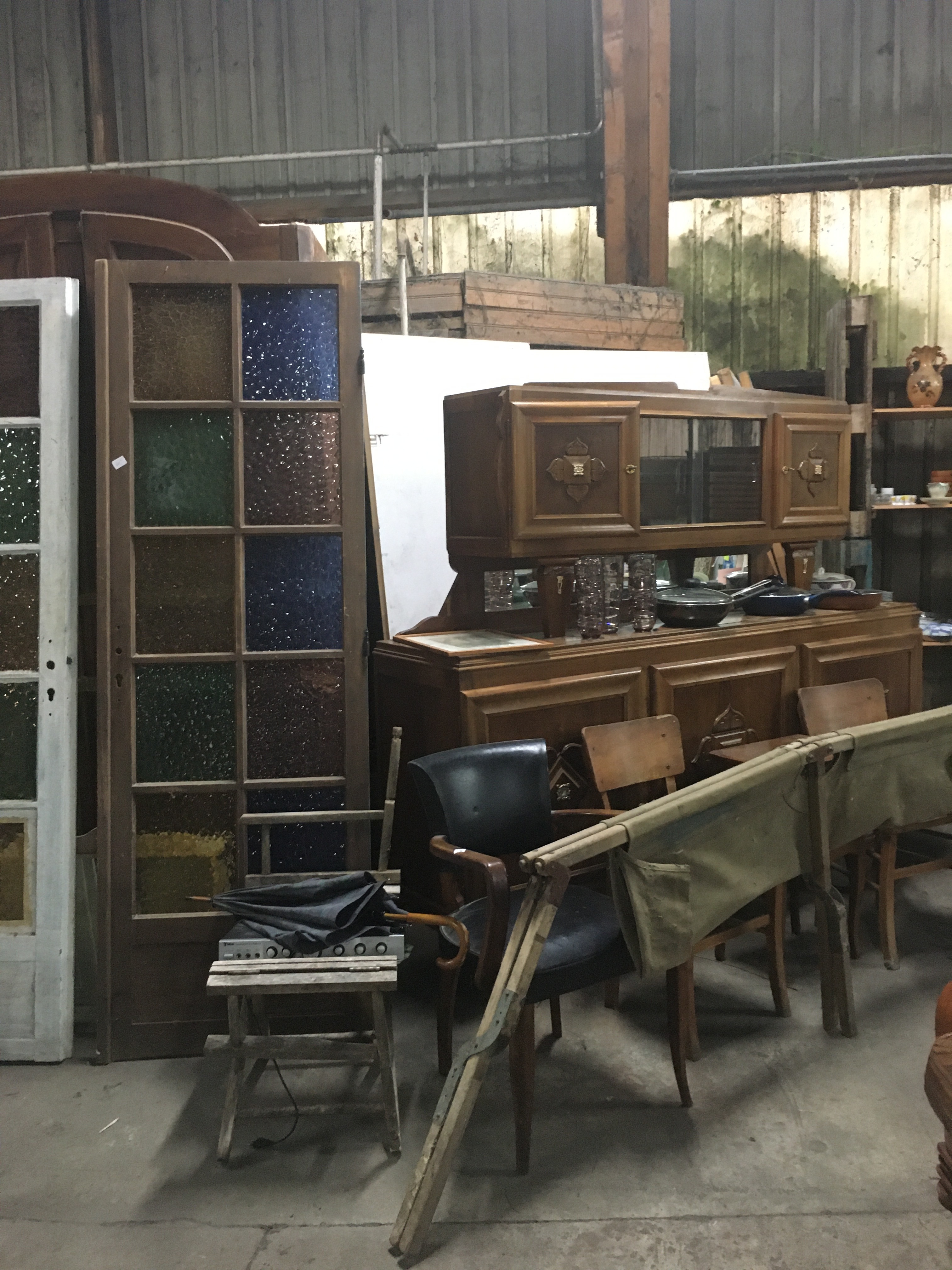 En février 2021, nous avons découvert LE lieu de folie grâce à un artisan du coin, merci L’Atelier de Marie O. Si vous souhaitez donner une seconde vie à vos meubles je vous la conseille, elle a de l’or dans les mains. Je vous préviens, c’est la plus grosse brocante de Gironde, C’est son propriétaire Jean Michel Soyez qui le dit et je le crois sur parole. Sud-Ouest lui a consacré un article qui commence à dater (2014) mais qui pose le décor/ En effet, nous avons visité le local à St Denis de Pile, au 176 bis route de Paris et il y a déjà 400m² d’entrepôt et 600m² d’extérieur. Prévoyez du temps, un y est restés 2h30 on a clairement visité que l’extérieur tellement il y a de stock et de choix L’intérieur est fou, tout est rangé, classé, et il y en a du sol au plafond. Et dehors, baissez le regard, levez la tête, ouvrez les poubelles (on a trouvé un lot gigantesque de pièces Lego dans l’une d’entre elles, ne vous laissez pas duper).