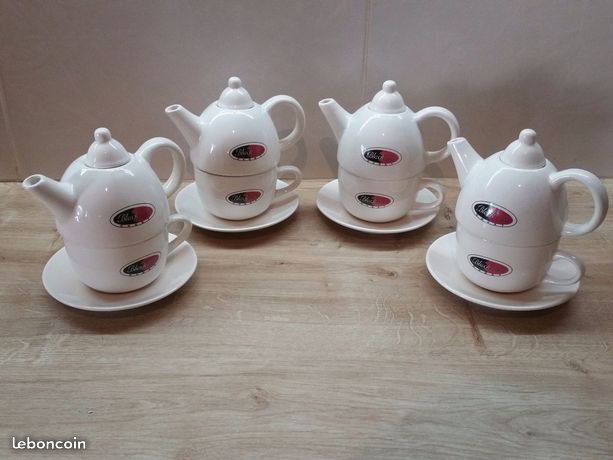 • 1 service à thé plus coloré (damier jaune, orange, noir)