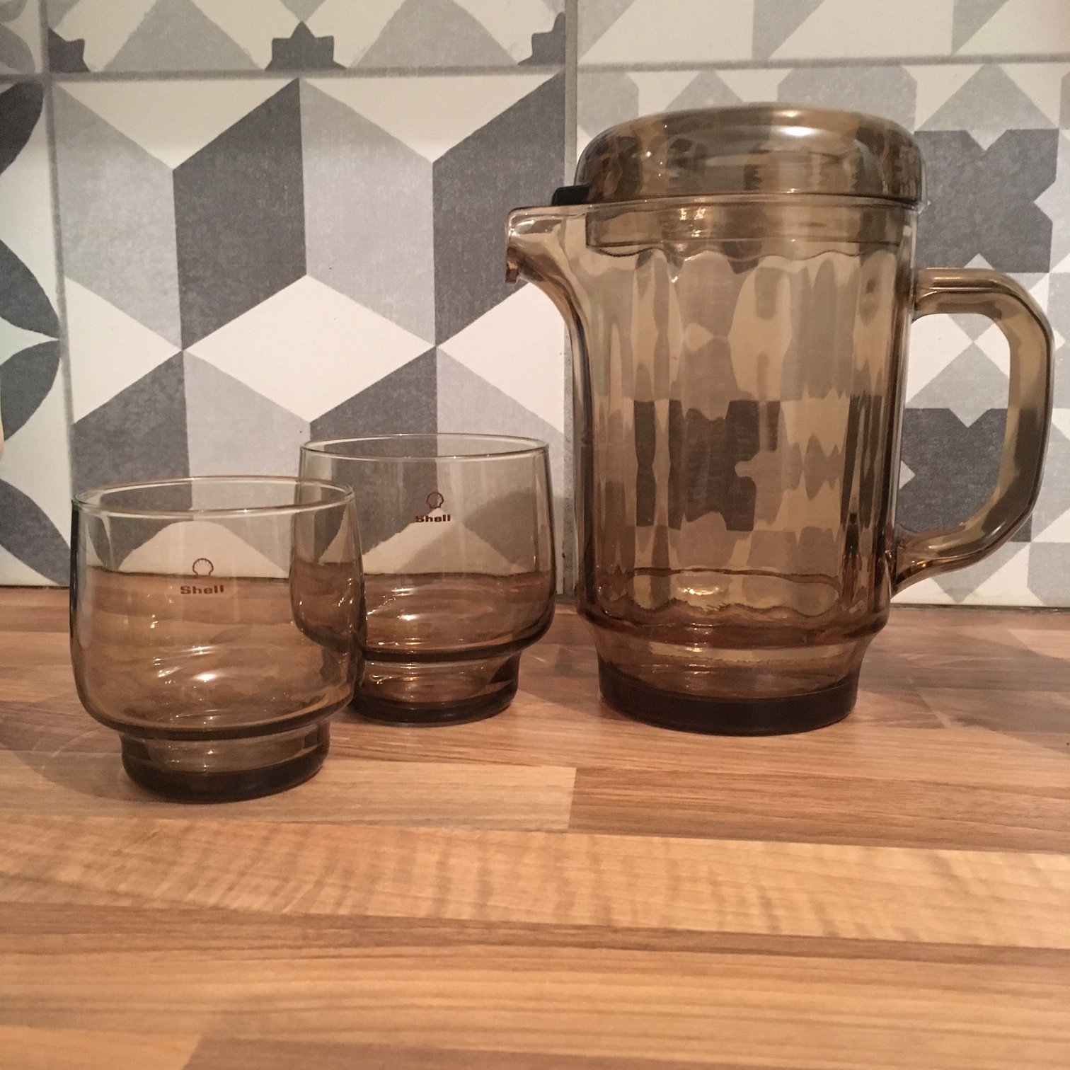 Une production Arcoroc, du verre fumé résolument vintage, un logo et une marque reconnaissable, Je vous présente mes services Shell. Vous pourrez les découvrir plus en détail dans l’article dédié aux cadeaux de stations service.
