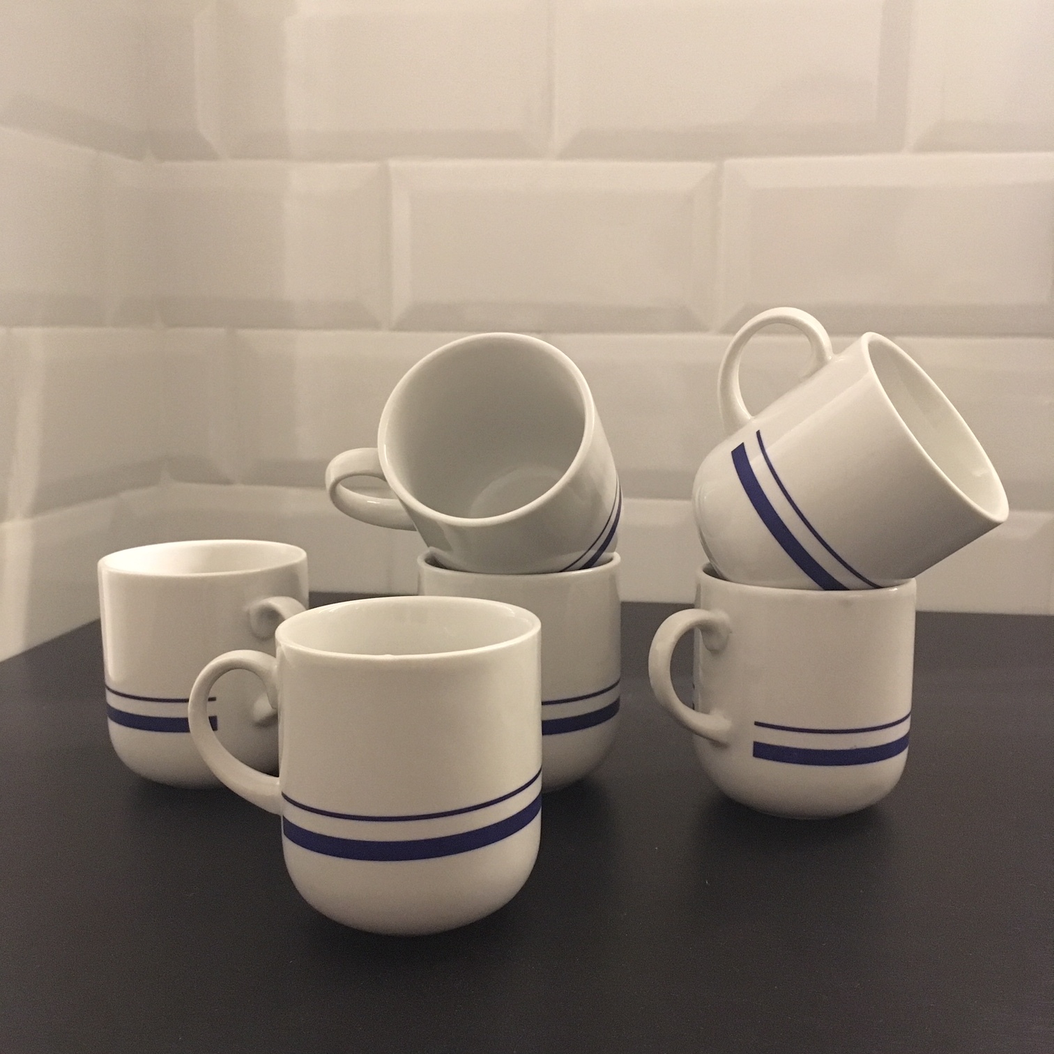 La vaisselle des chaines de restaurant possède ses petits avantages. Ces tasses à expresso Flunch sont empilables et très résistances.