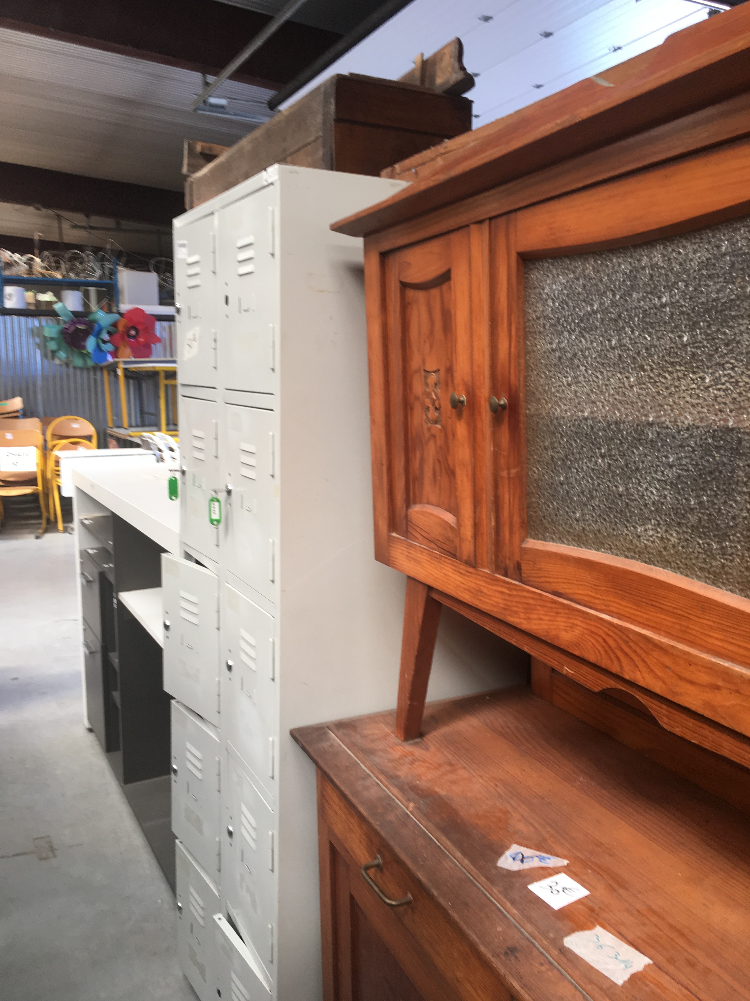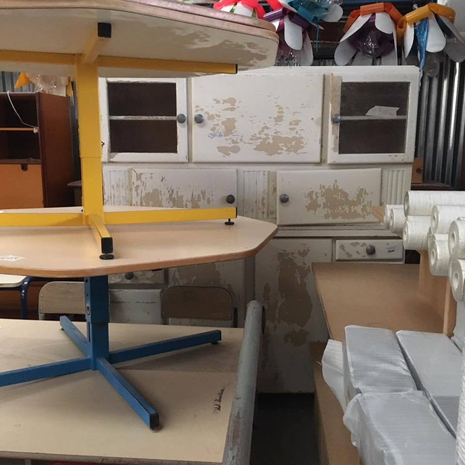 Ce lieu regorge de meubles qui attendent d’être rénové, de mobilier de bureau, d’hôtel ou d’école, et de vaisselle diverse. Pour connaitre les arrivages, nous vous conseillons de vous inscrire au groupe Facebook « les arrivages de l’atelier d’Eco Solidaire ».