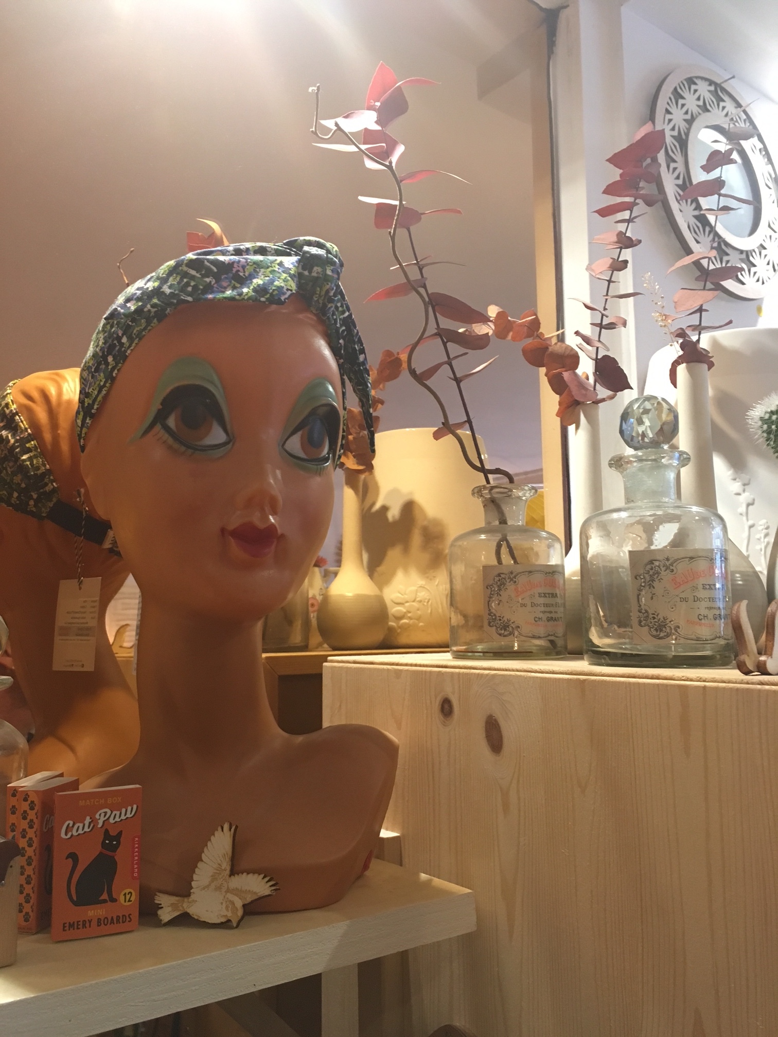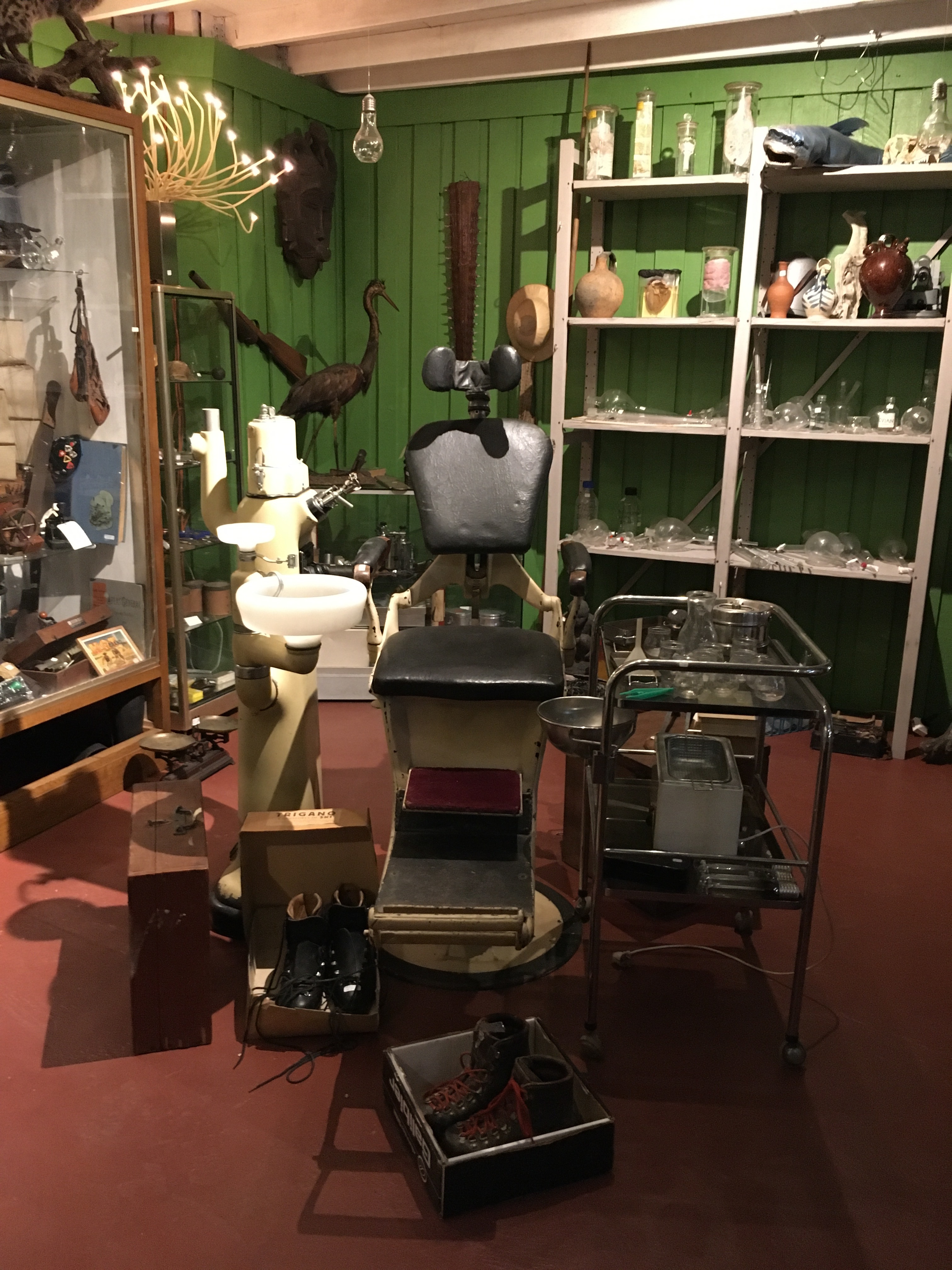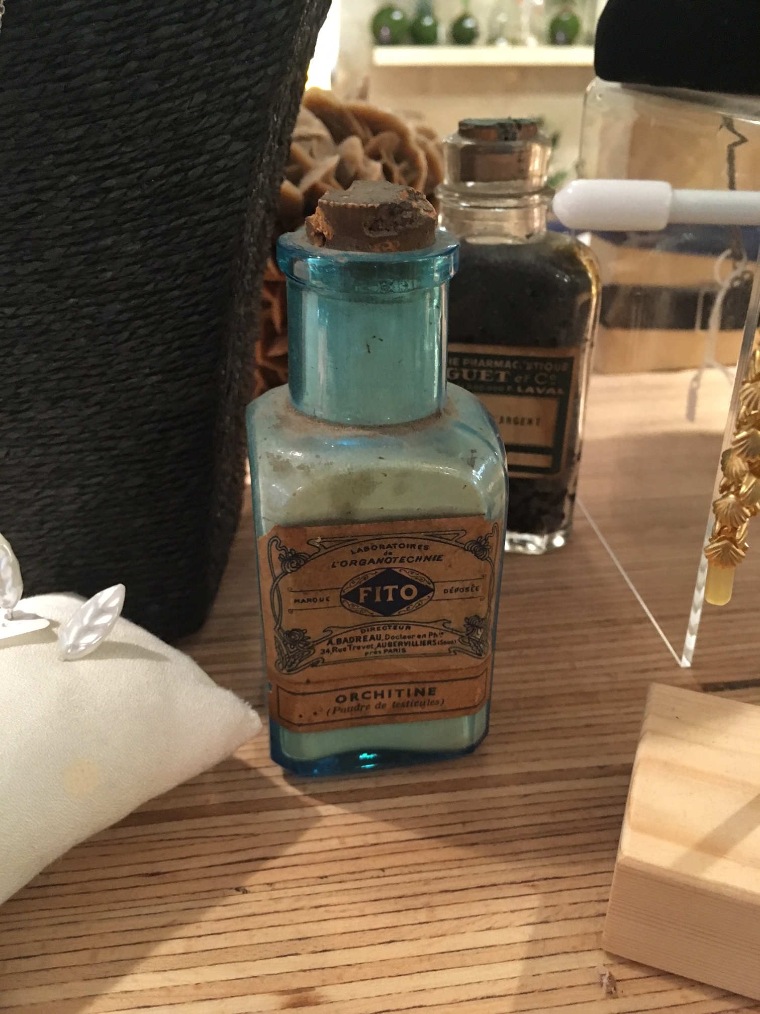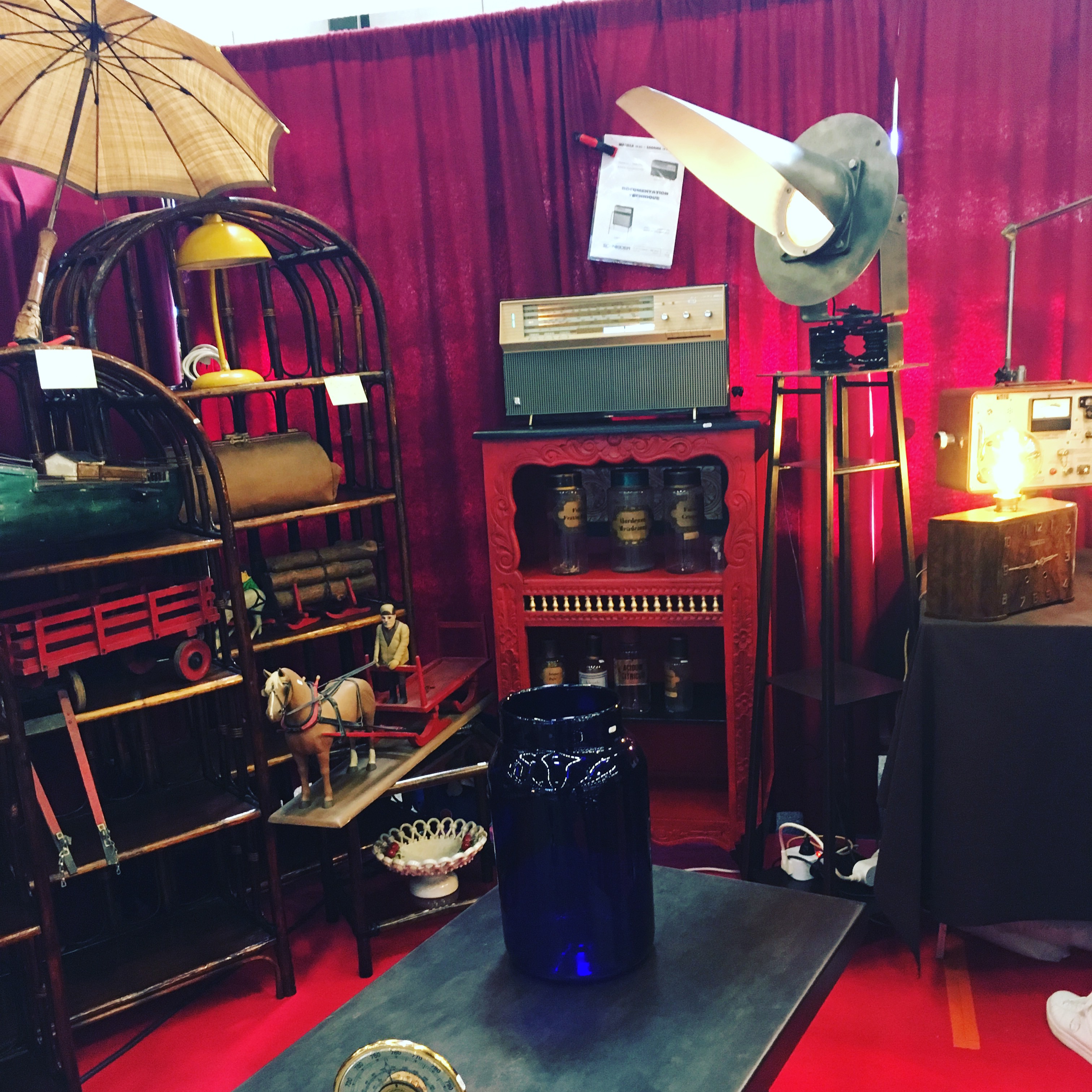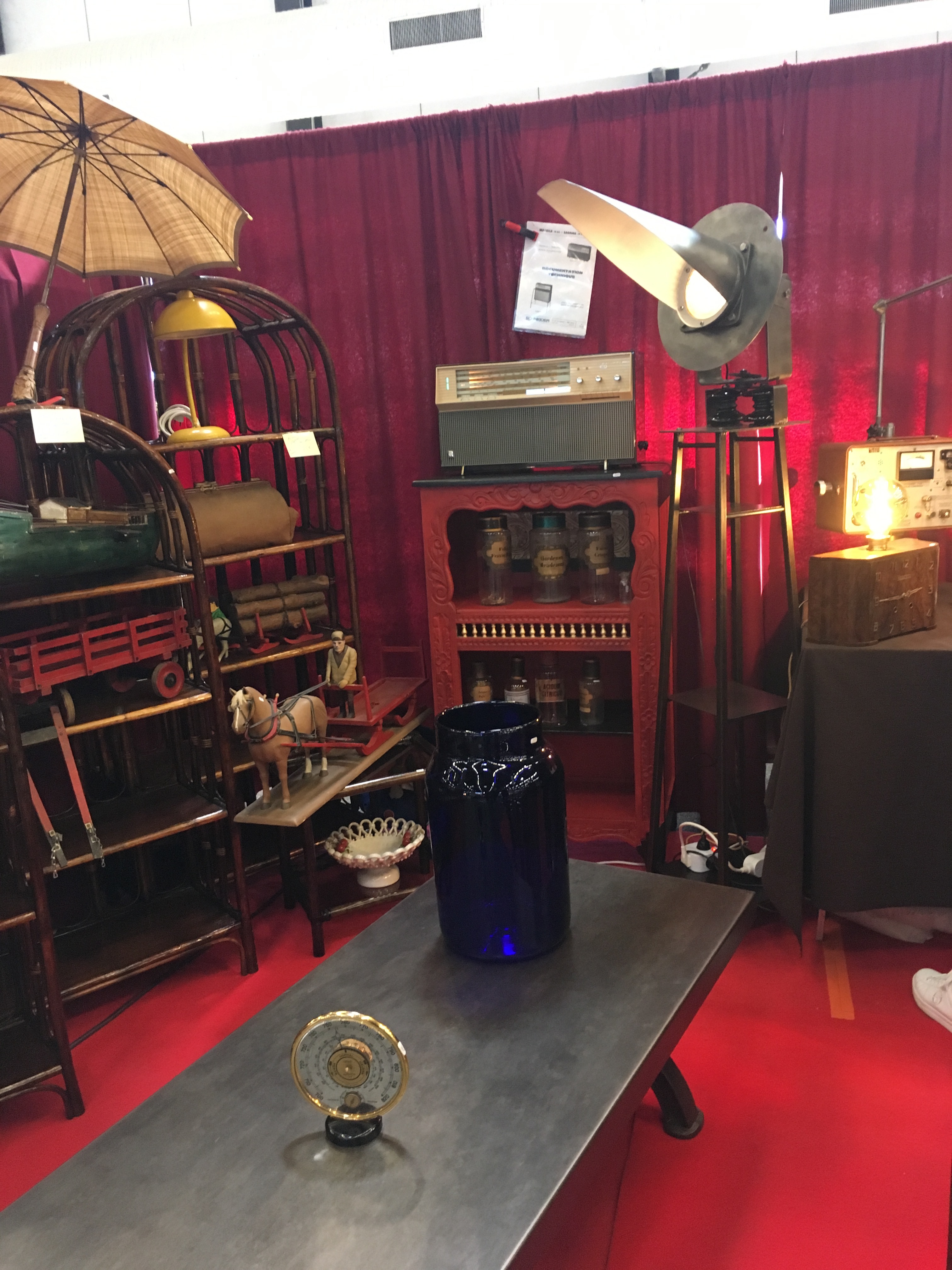 Vous trouverez aussi des pièces thématiques autour du garage, du monde du vin, des accessoires de cuisine, une friperie avec une vitrine récupérée d’un casino dont vous me donnerez des nouvelles, un chef d’œuvre art déco ou art nouveau je ne sais jamais. Et moi mon coin favori, c’est le coin cabinet de curiosités, je sais ça peut faire flipper, mais j’aime beaucoup les objets en rapport avec la médecine. Si vous avez déjà lu l’article sur ma collection personnelle d’objets médicaux et boites de pharmacie, vous êtes au courant. Entre mobilité de cabinet médical, pots d’apothicaires, boites et fioles de médicaments, cranes et autres fioles de cabinet de curiosité, c’est mon coin à moi. Une copine n’a pas pu y rentrer lors de sa première visite, pour vous dire que je comprend que cela puisse vous paraitre étrange.