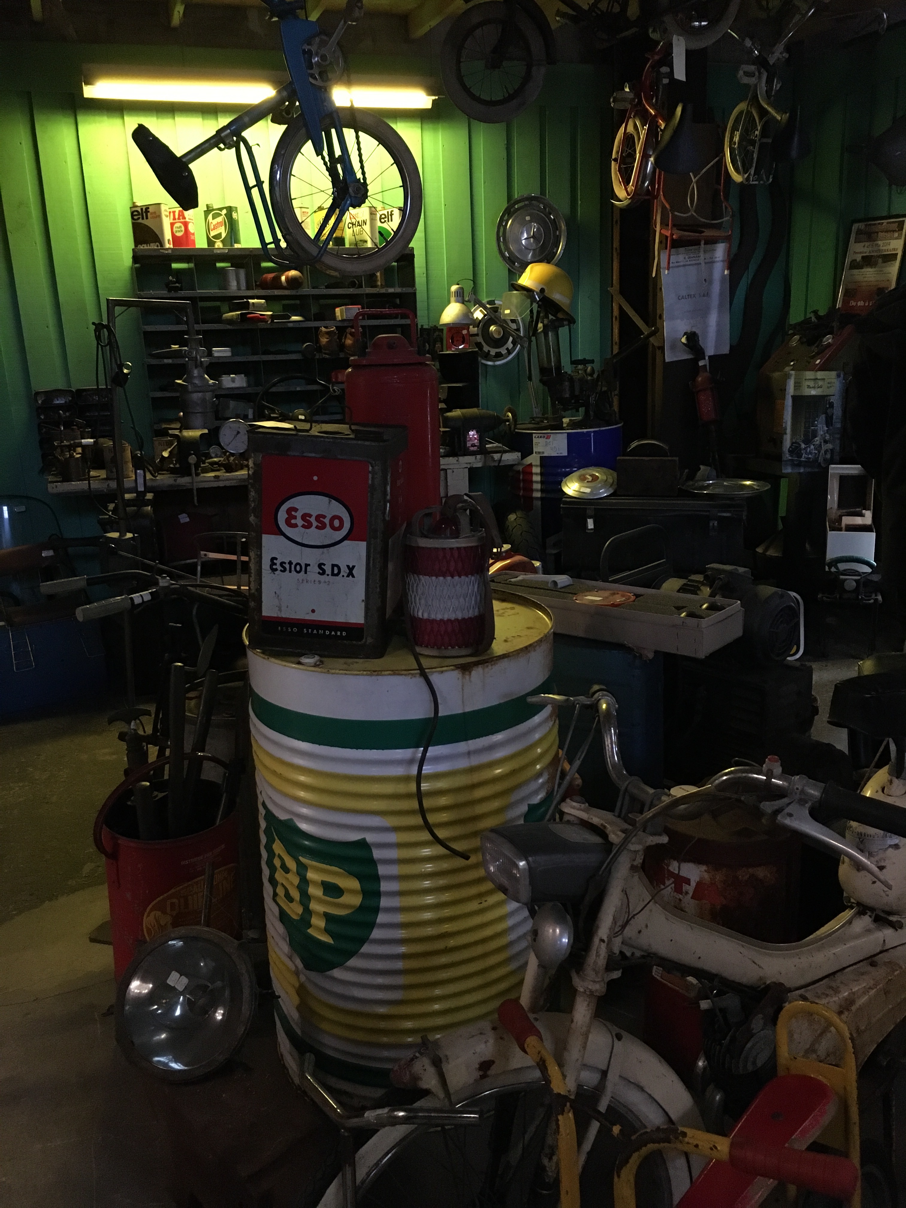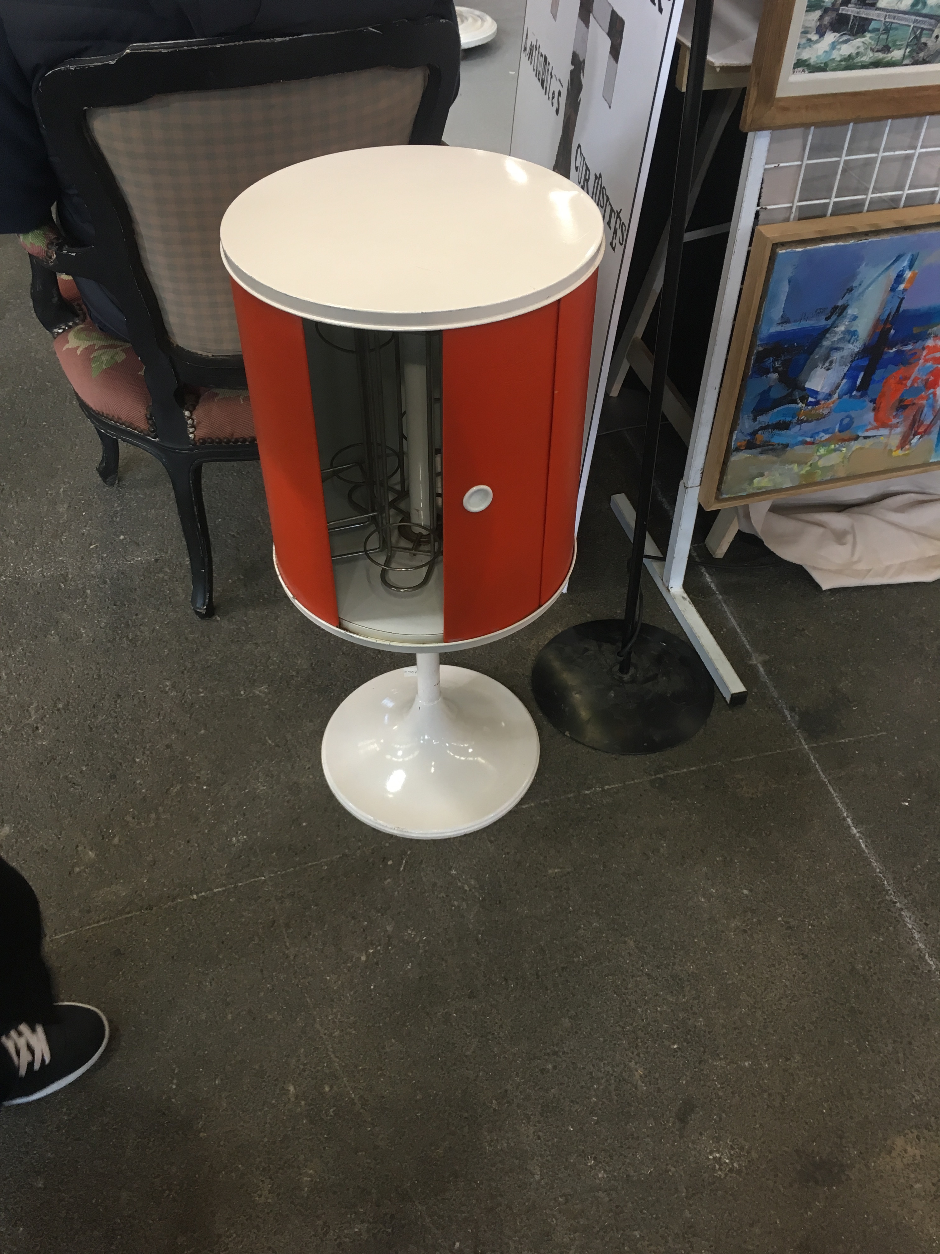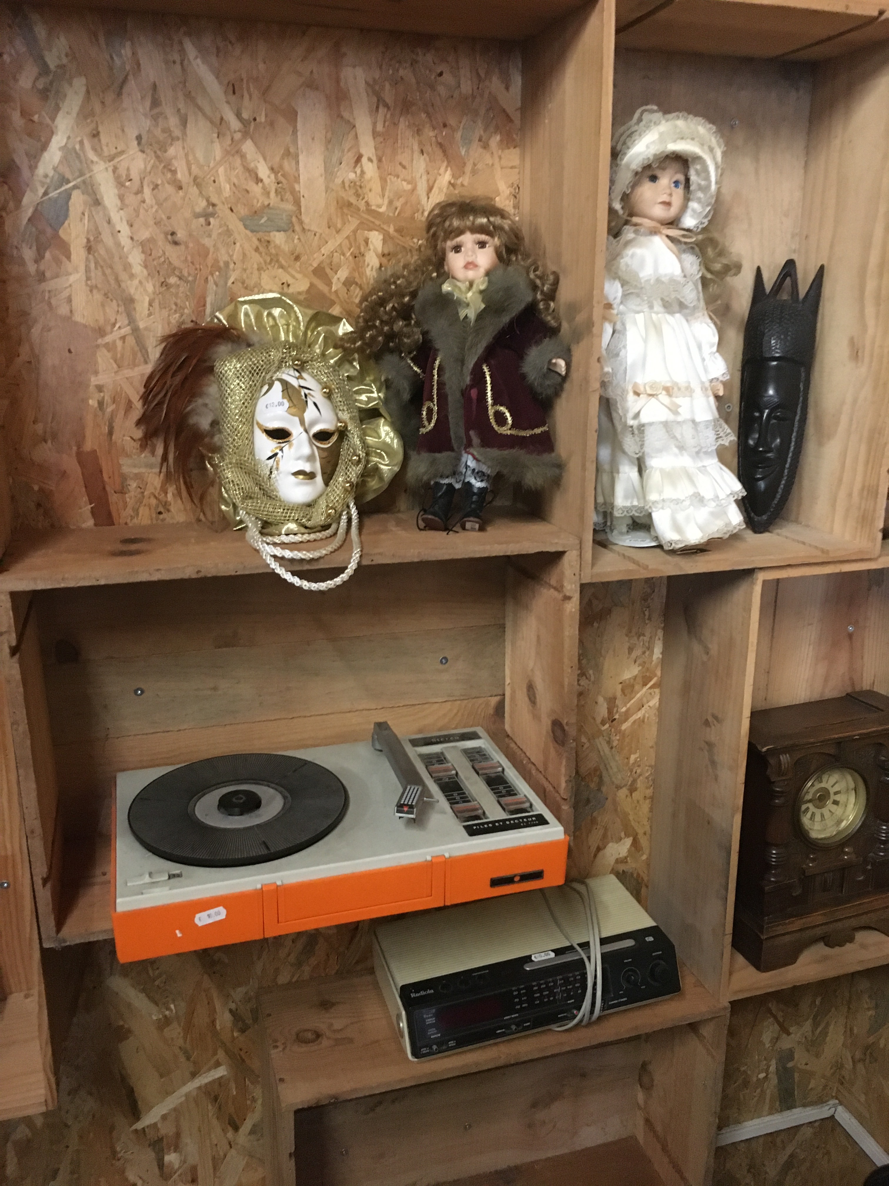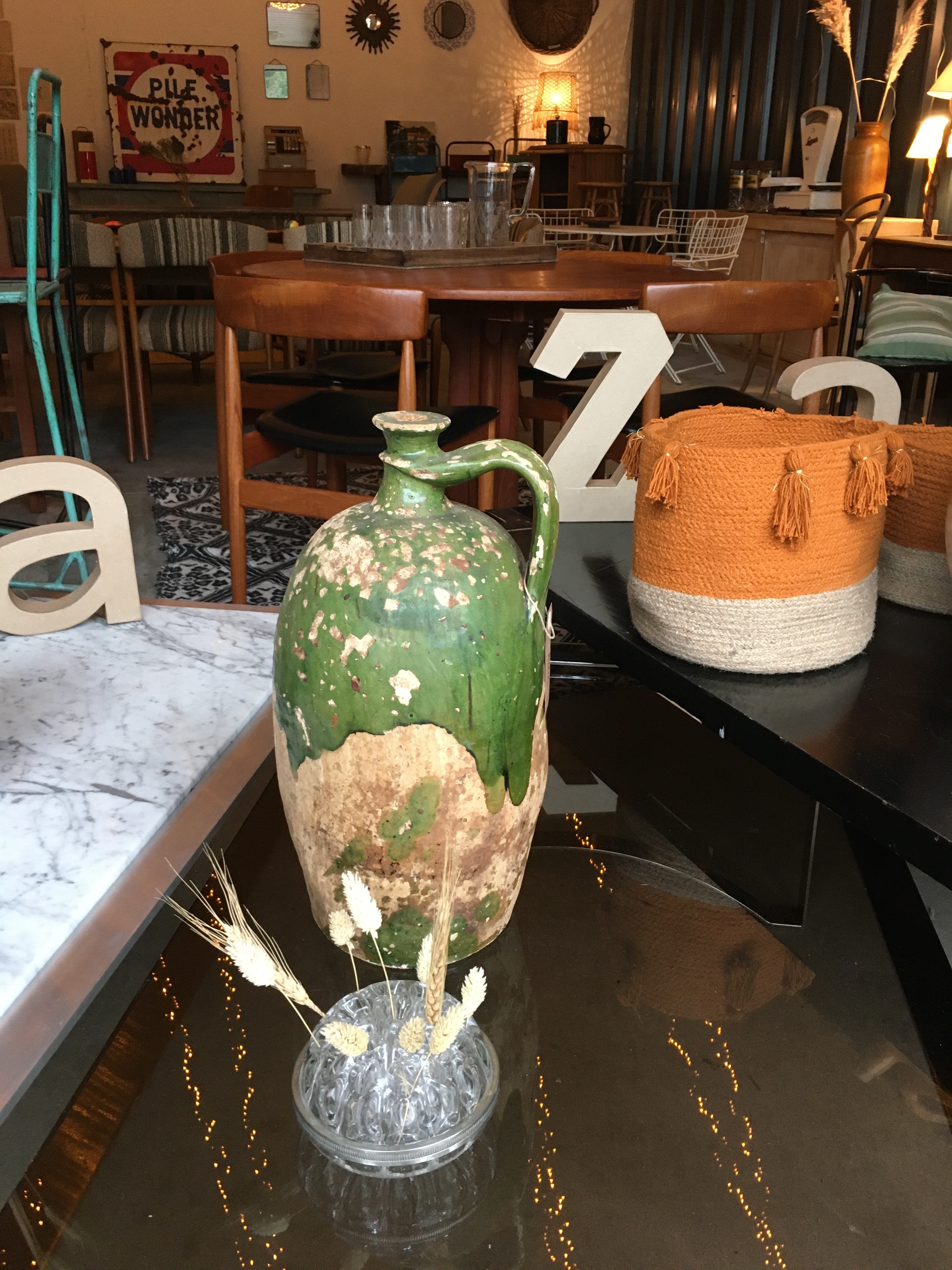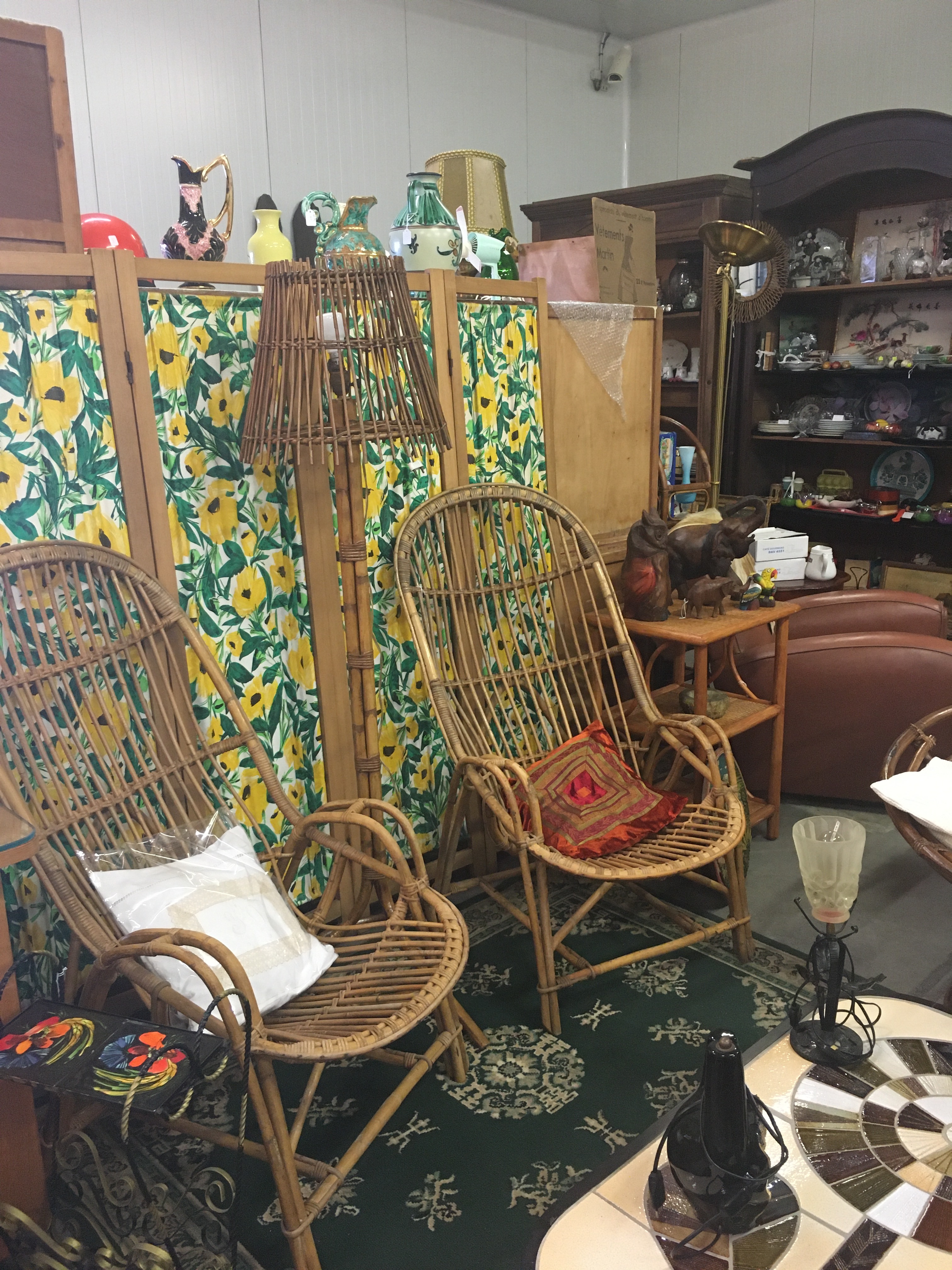 Le lieu est bien rangé, et souvent renouvelé. On y a pris nos marques, il y a 2 armoires sur la gauche, une dédiée au vintage (plastique, fleurs et couleurs) et sa voisine dédiée aux objets publicitaires de bar. Vous y trouverez :
