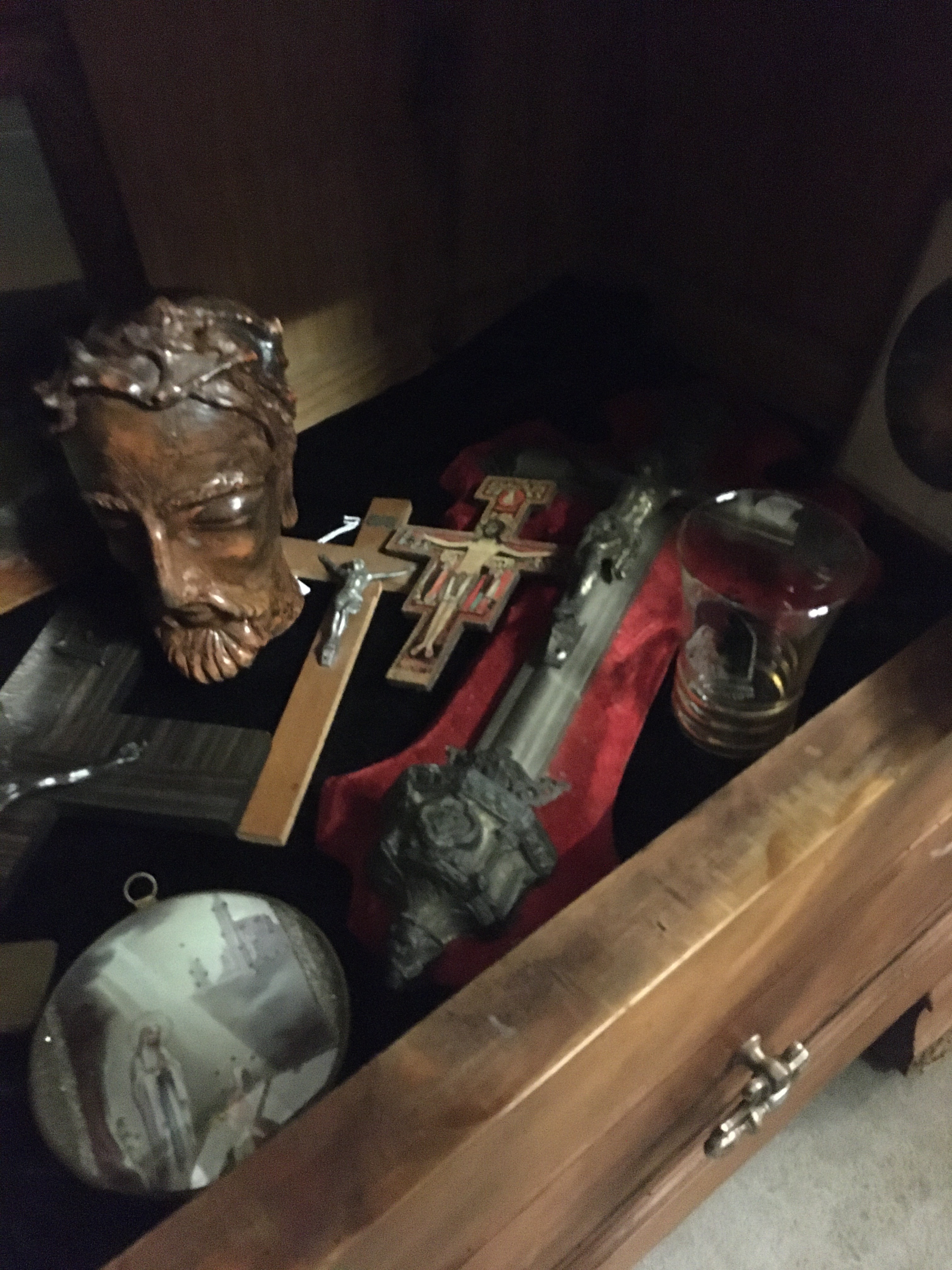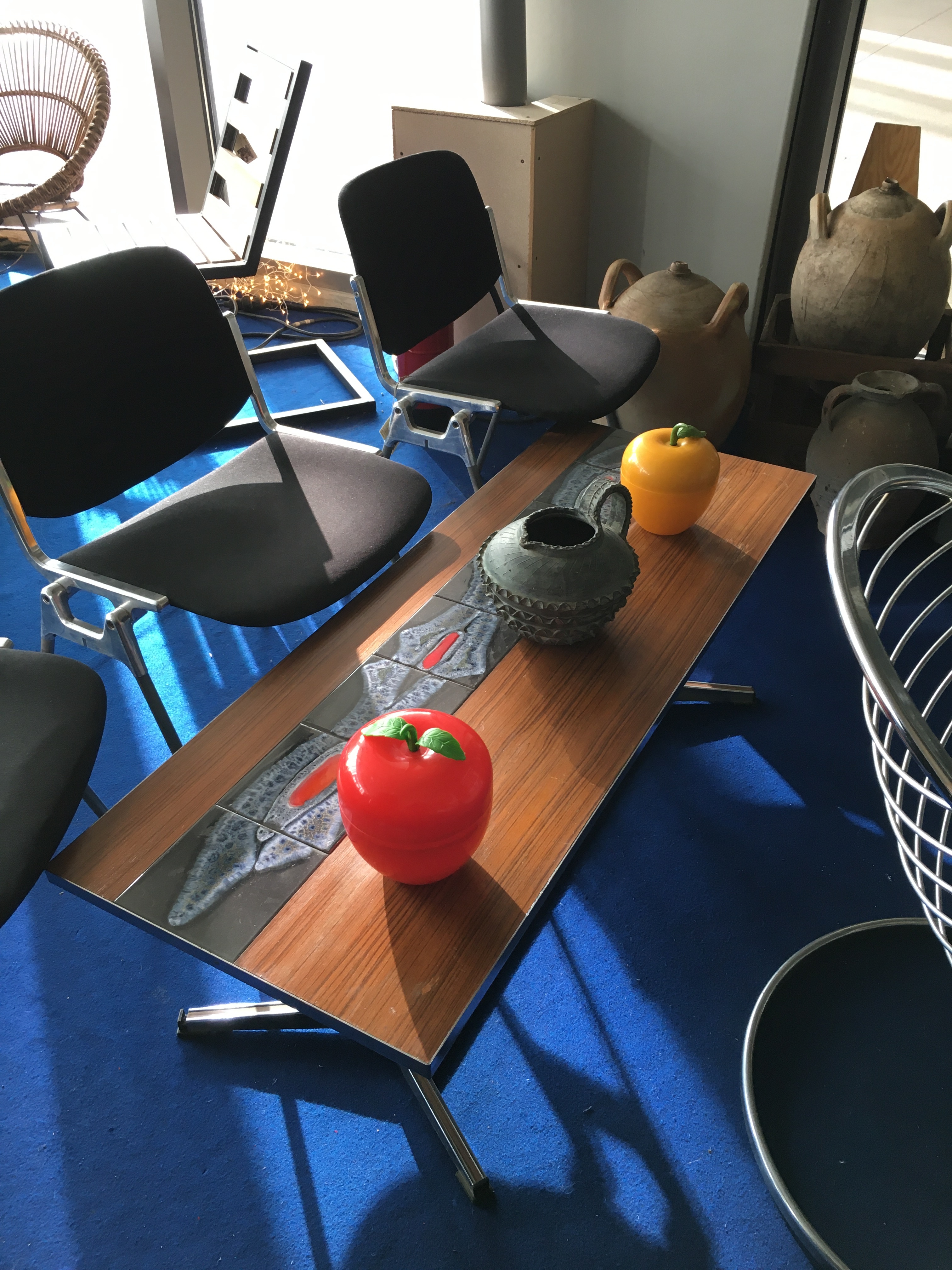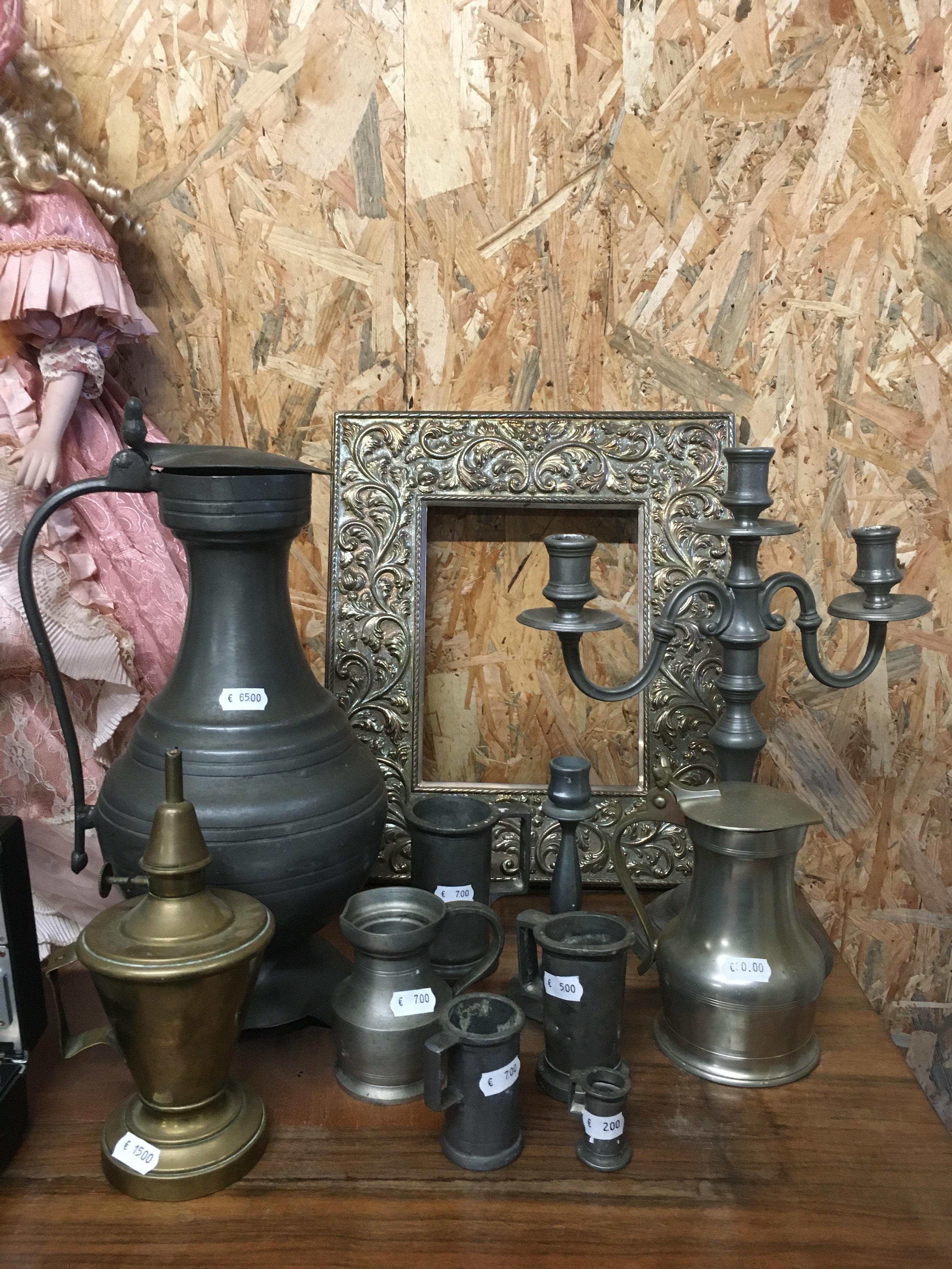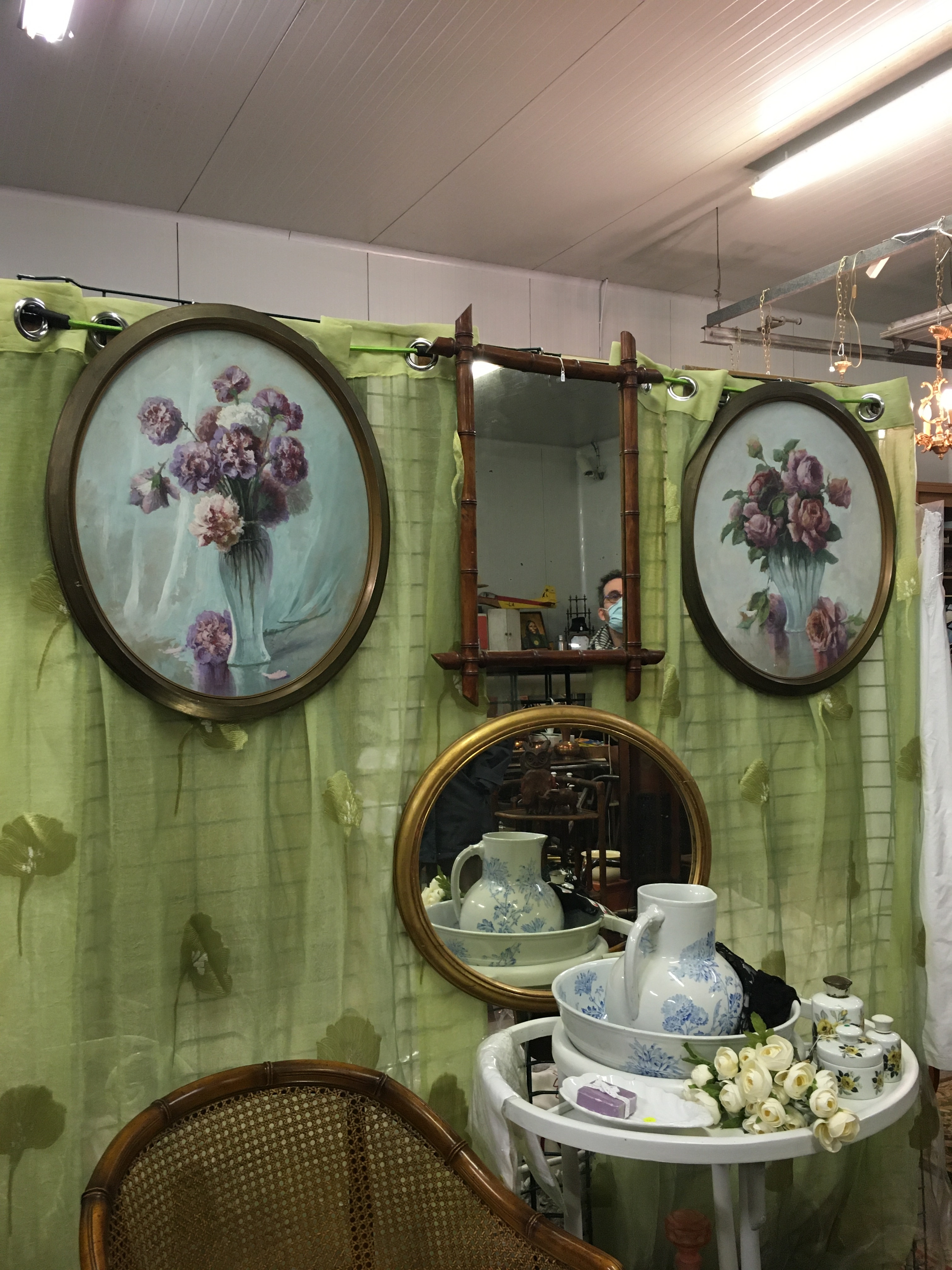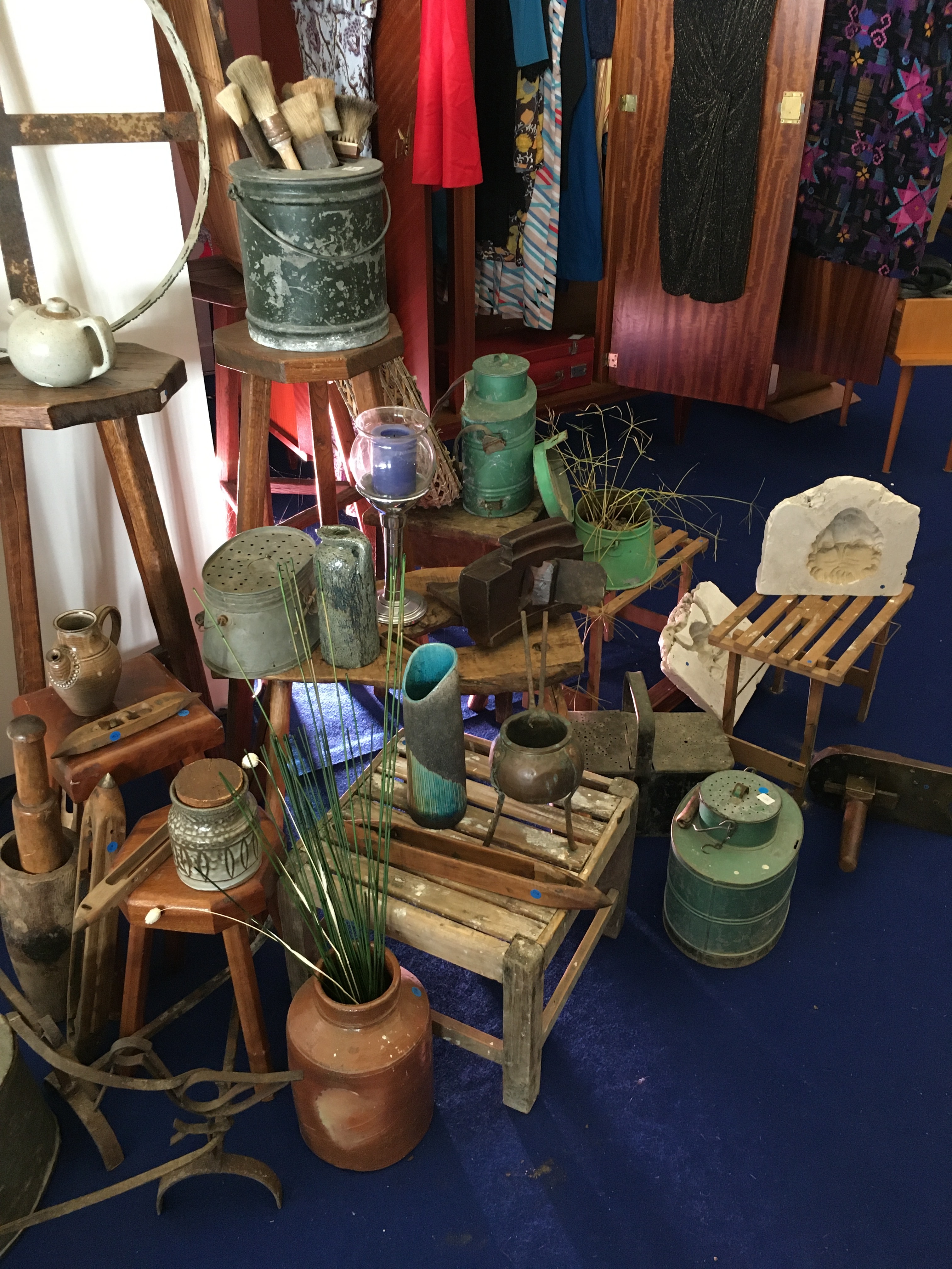Le lieu est bien rangé, et souvent renouvelé. On y a pris nos marques, il y a 2 armoires sur la gauche, une dédiée au vintage (plastique, fleurs et couleurs) et sa voisine dédiée aux objets publicitaires de bar. Vous y trouverez :