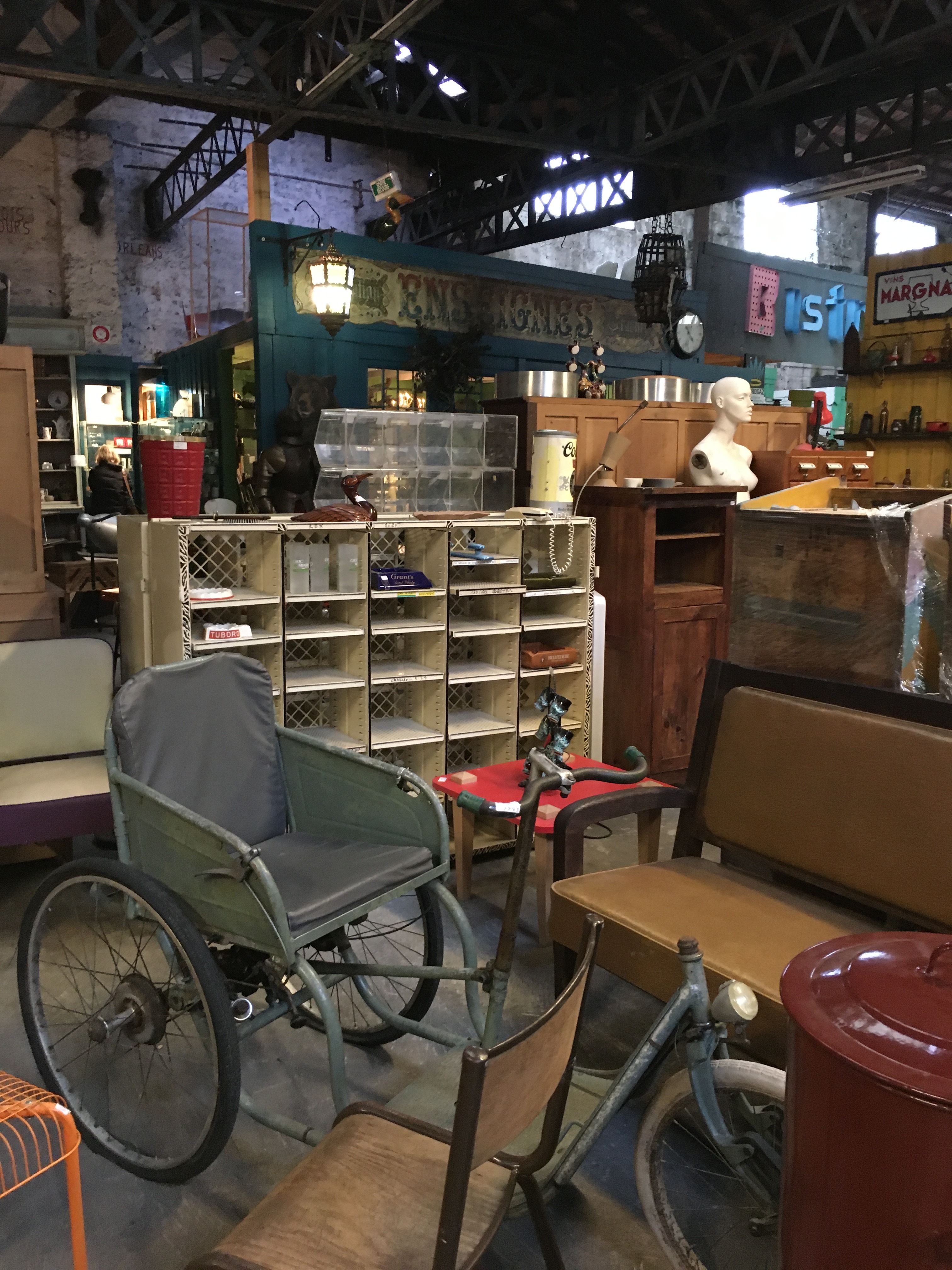 Je ne connaissais pas du tout ce lieu et j’ai vraiment été surprise en passant le portail pour la première fois. Il était pour moi impensable d’avoir un lieu comme celui ci à Bordeaux, et bien si ! Quartier de la Gare, vous découvrirez un espace gigantesque, un entrepôt hyper bien pensé par ses occupants. Un voyage dans le temps. Si vous décidez d’y passer, prévoyez 2 bonnes heures. Le lieu est vraiment grand, impossible de faire l’impasse sur une partie du bâtiment tellement c’est une ôde au passé.