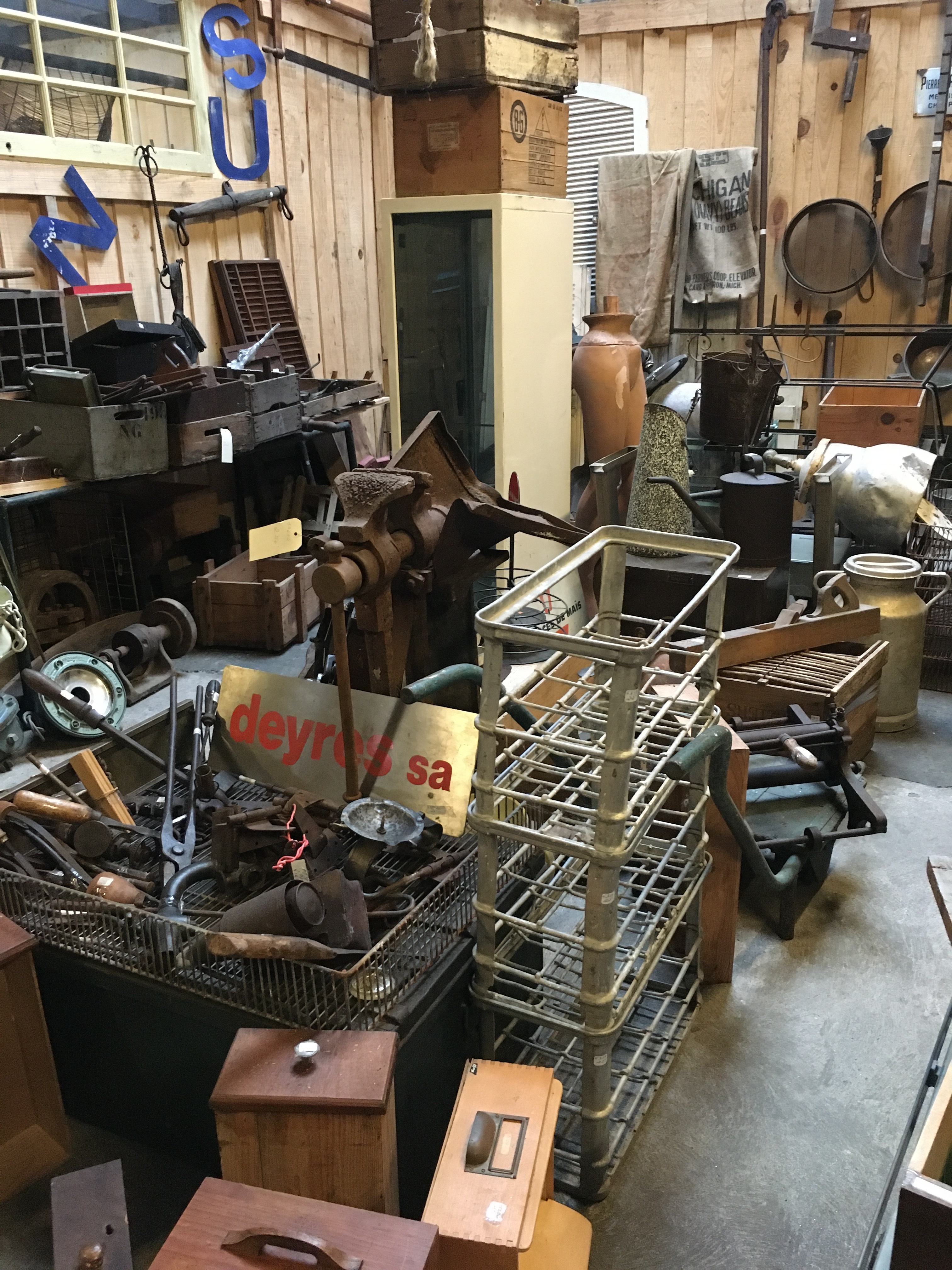 JAC Brocante est situé à Bouliac donc, ville de Bordeaux Métropole, sur la rive droite de la Garonne. Il occupe une ancienne chambre froide gigantesque et il ouvre ses portes tous les WE hors événements. L’avantage c’est que vous ne vous battrez pas pour trouver une place, le parking est grand même s’il est partagé avec d’autres entreprises. Rdv au 1 Chemin de la Matte, 33270 Bouliac. Votre GPS vous amènera certainement sur un rond point avec un négociant en meubles exotiques, c’est juste derrière.