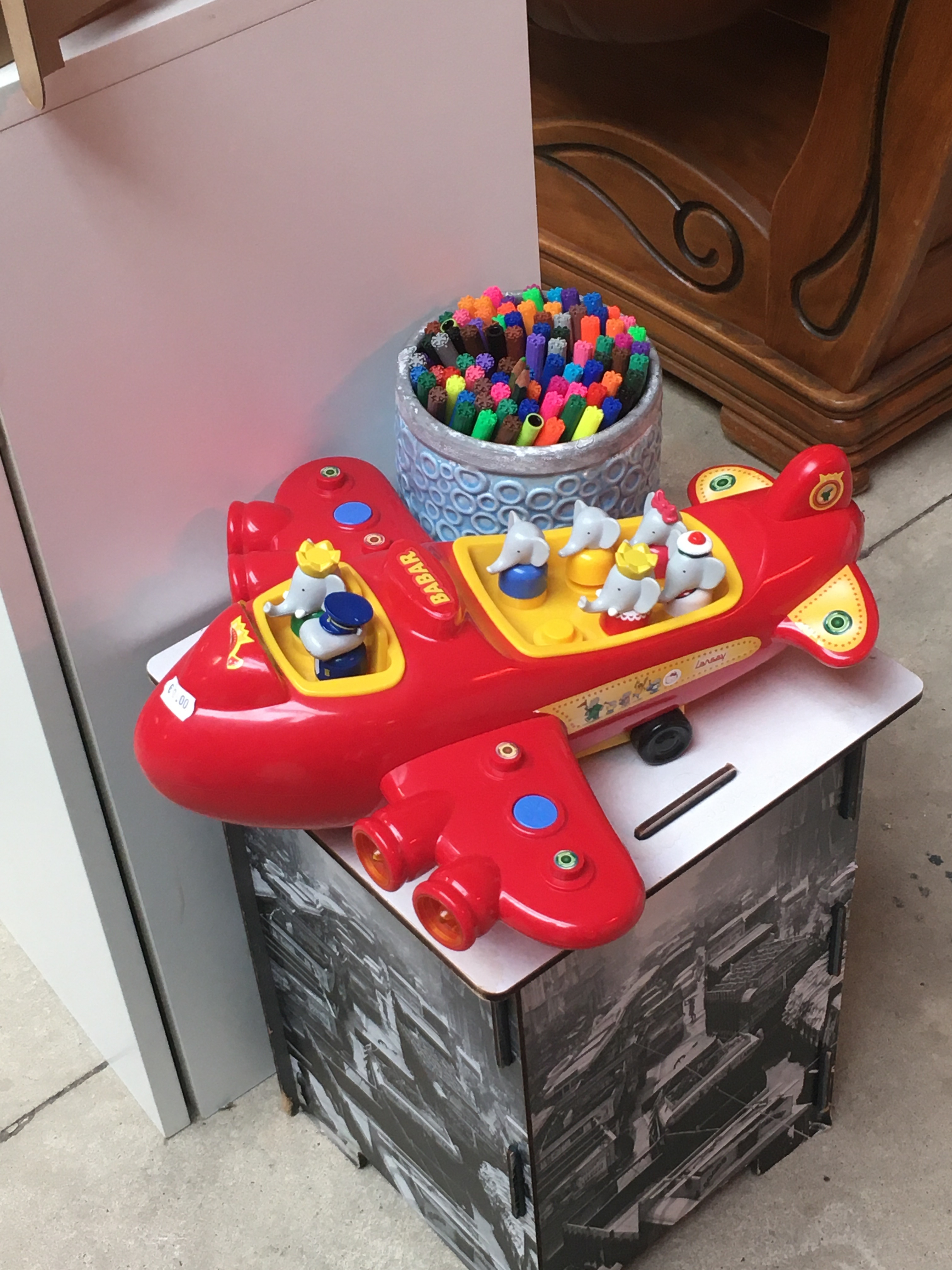 Le lieu est plutôt petit et réparti en 2 pièces, une première petite à l’entrée avec les pièces qui semblent les plus onéreuses et fragiles, et le grand hangar plutôt classique. Il y avait beaucoup de monde lors de notre visite et les consignes de sécurité liées au covid nous imposaient une visite limitée à 30 min, c’était finalement suffisant pour faire le tour. On est peut-être mal tombés mais rien à réellement signaler à part un jouet Babar qu’on aurait bien embarqué si une dame n’avait pas jeté son dévolu dessus 2 minutes avant qu’on ne ose nos regards sur lui.