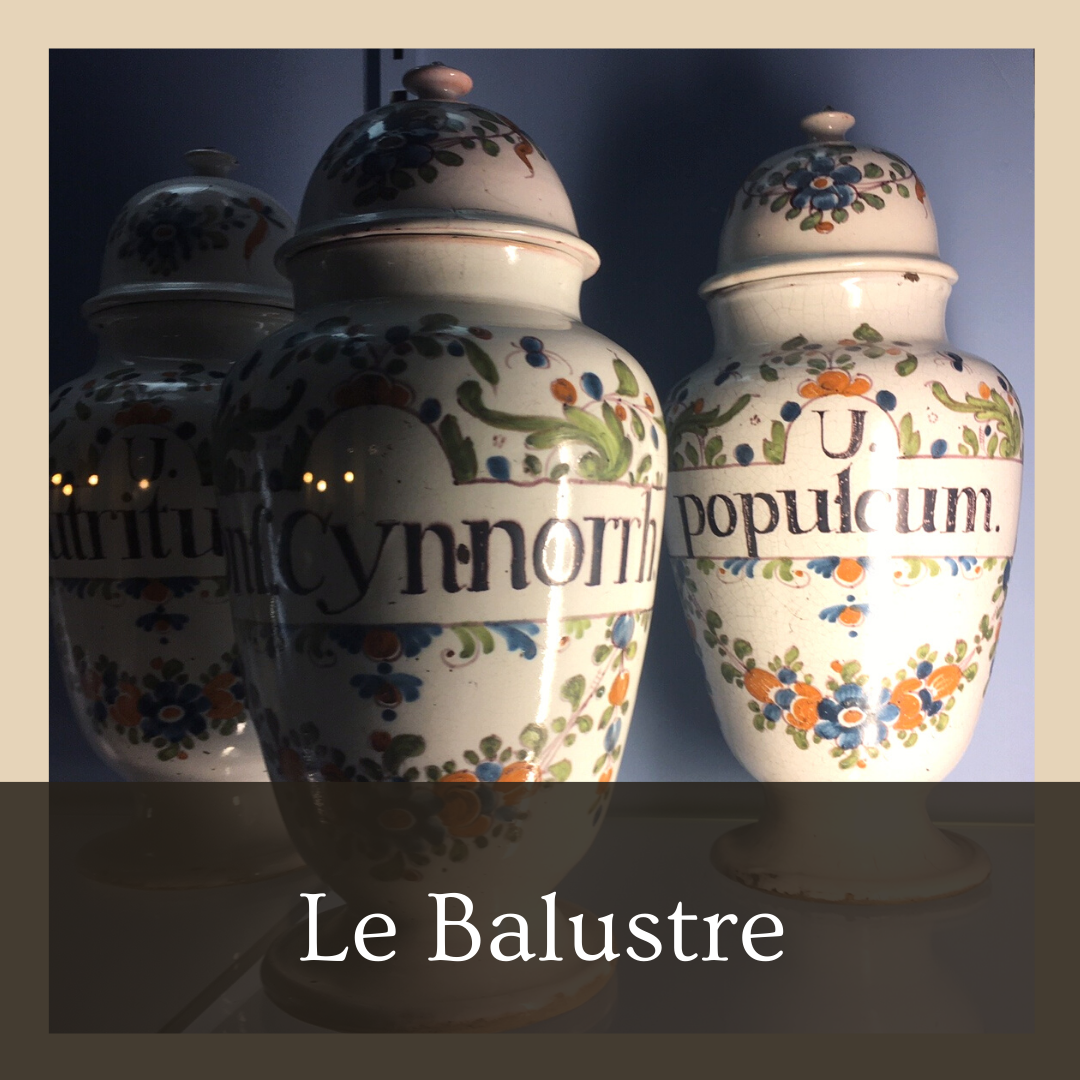 - Les pots « balustres » sont très utilisés en apothicarie et pharmacie à Bordeaux, cette forme est connue aussi car elle est très utilisée pour les sucriers.